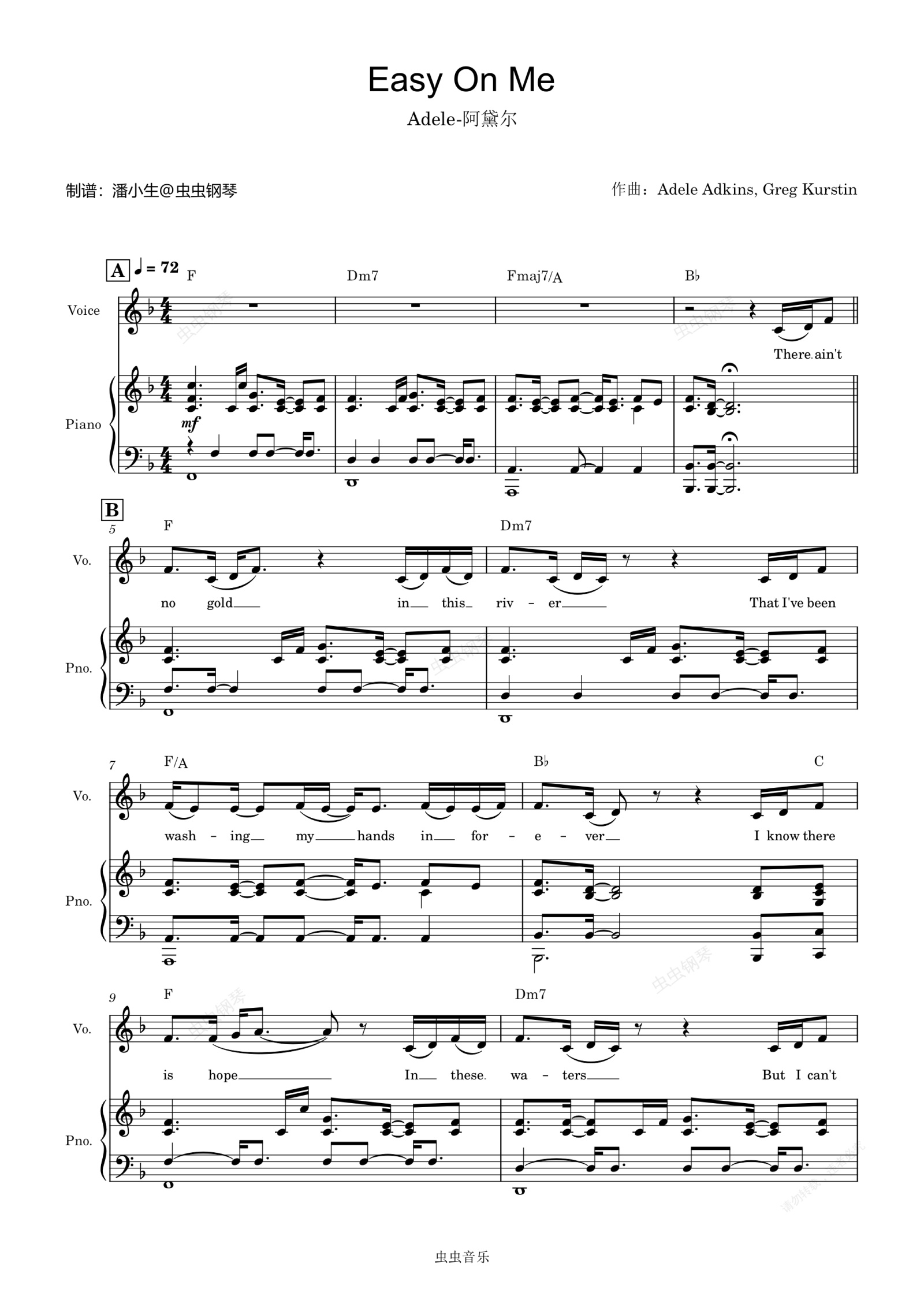 钢琴谱:Easy On Me,阿黛尔,Adele,原调带和弦人声,钢琴伴奏弹唱谱