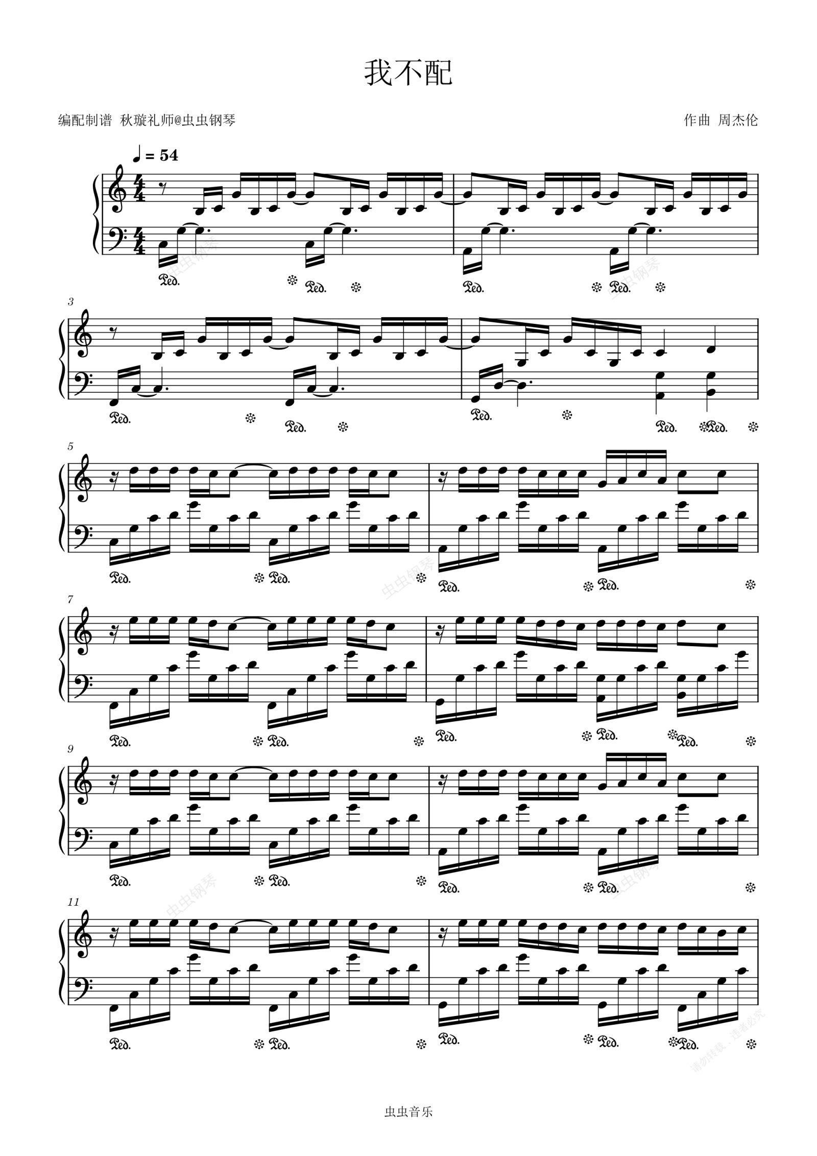 钢琴谱:C调 [极限还原] 我不配