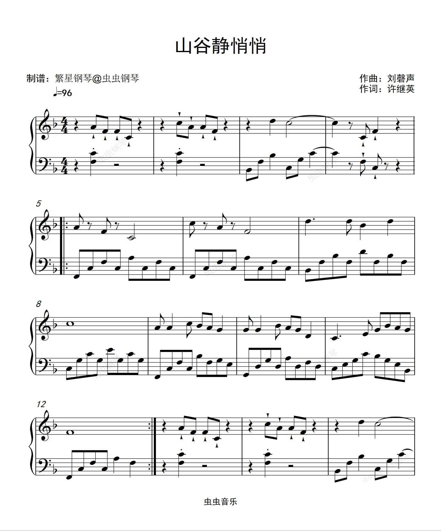 钢琴谱:山谷静悄悄