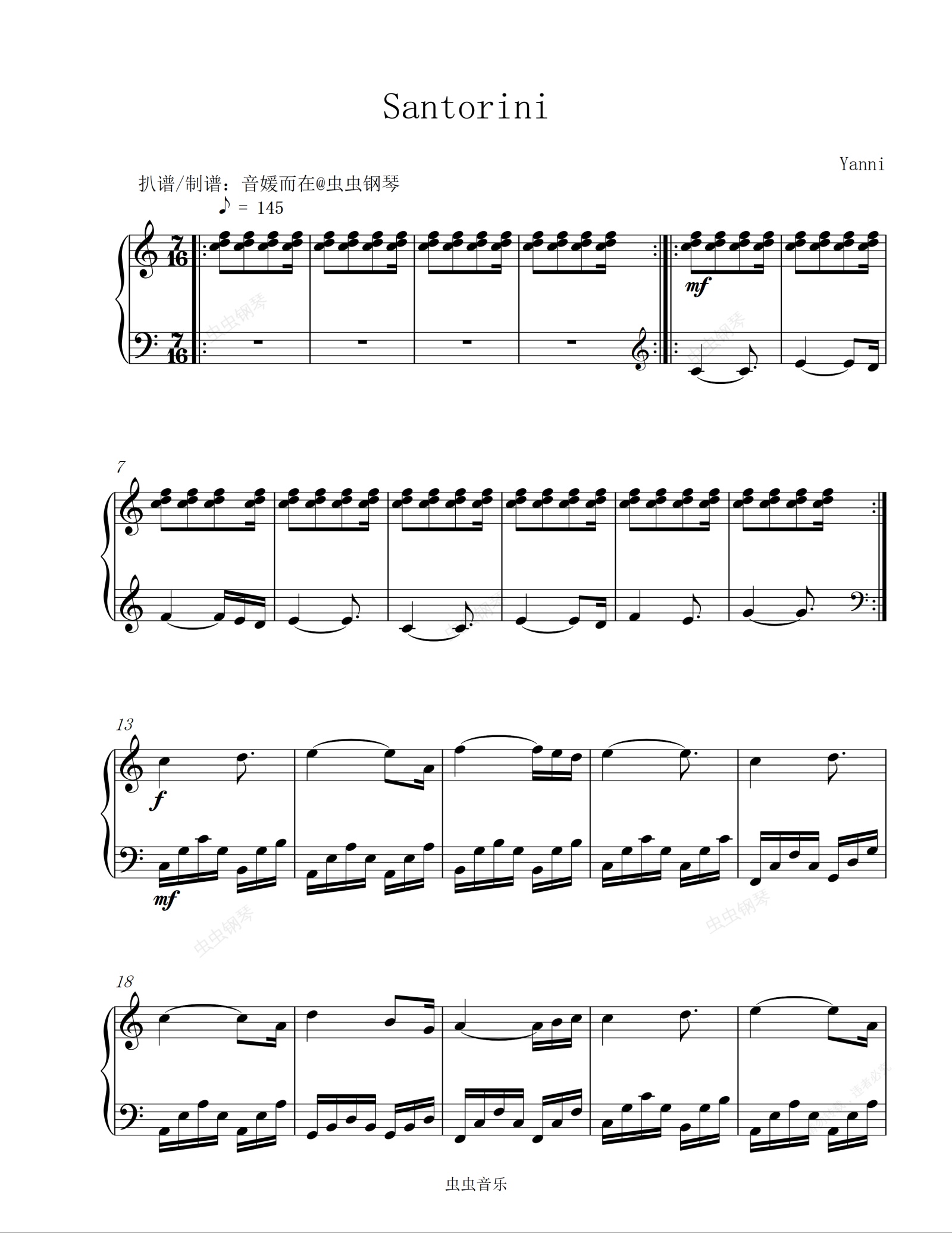 钢琴谱:Yanni-Santorini 【钢琴轻音乐 | 舒缓音乐】