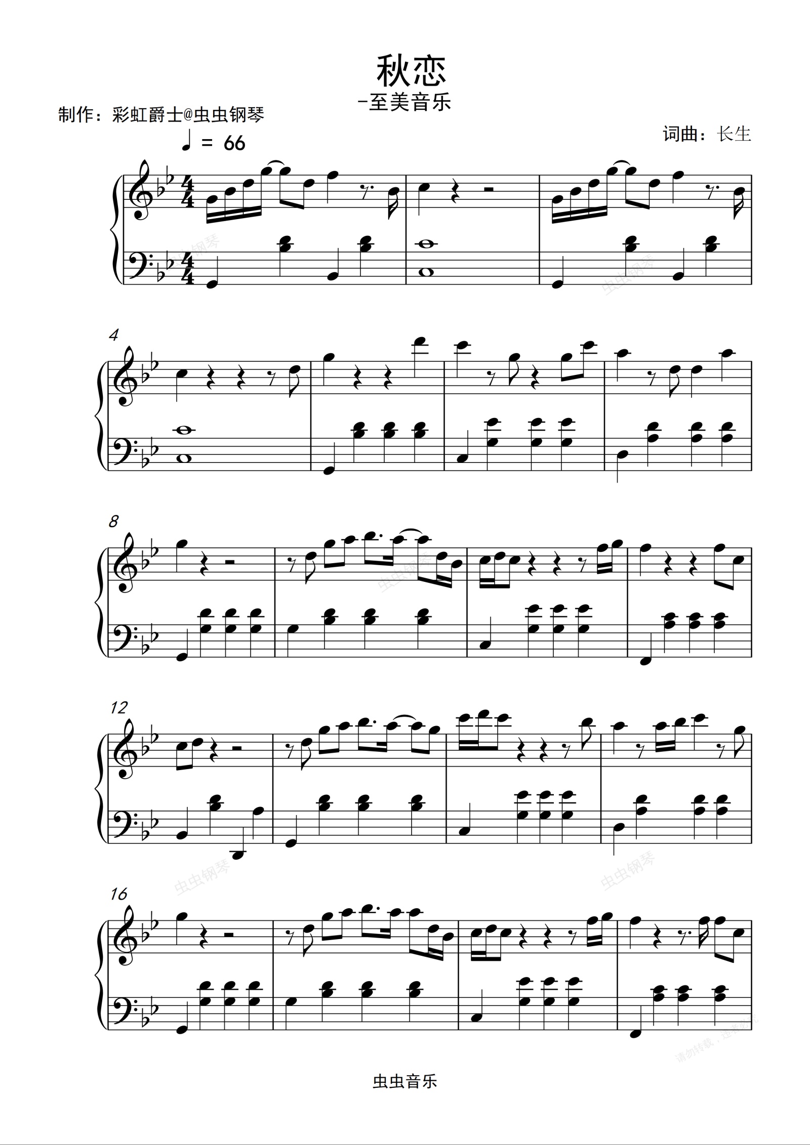 钢琴谱:秋恋-至美音乐
