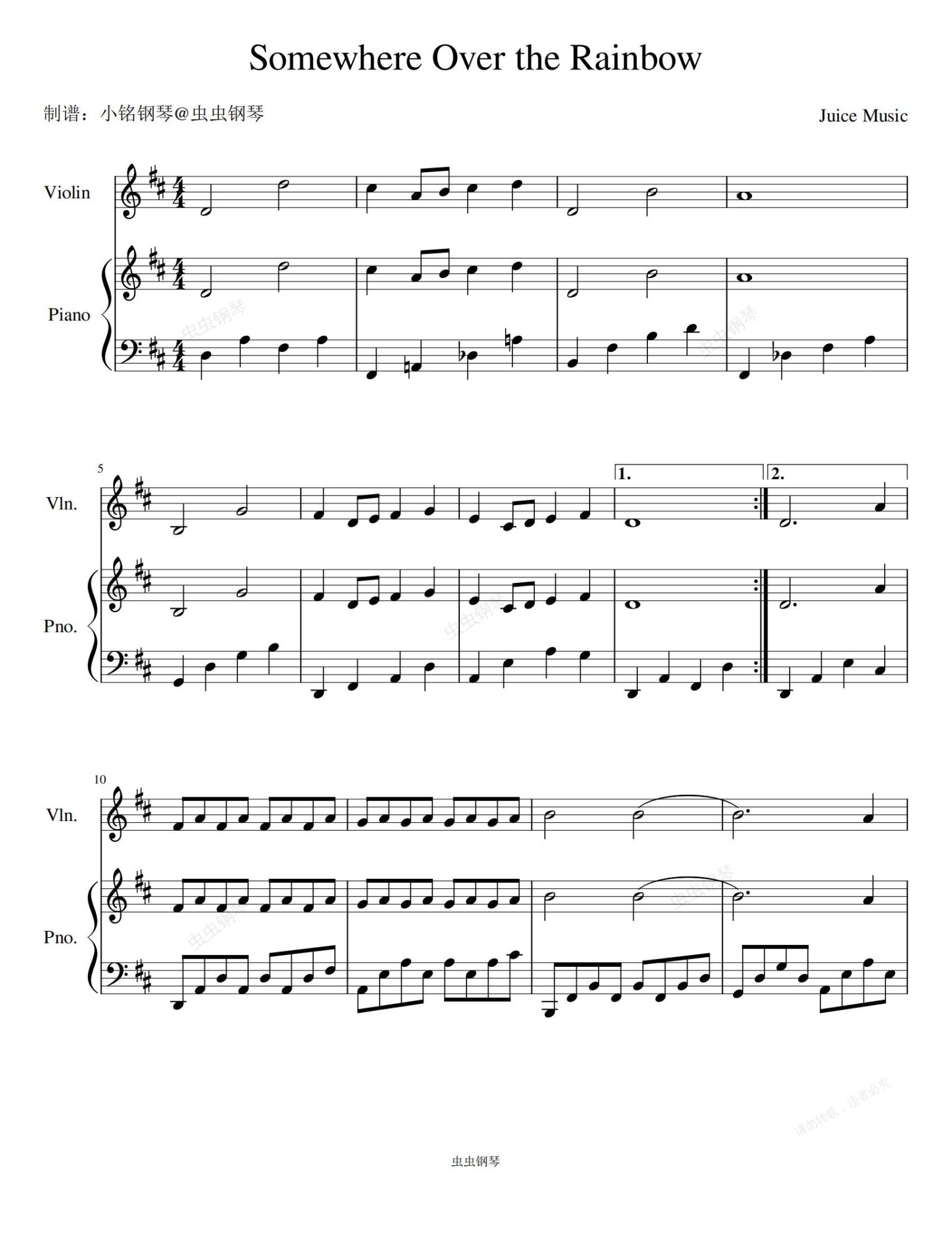 钢琴谱:Somewhere Over the Rainbow - Juice Music