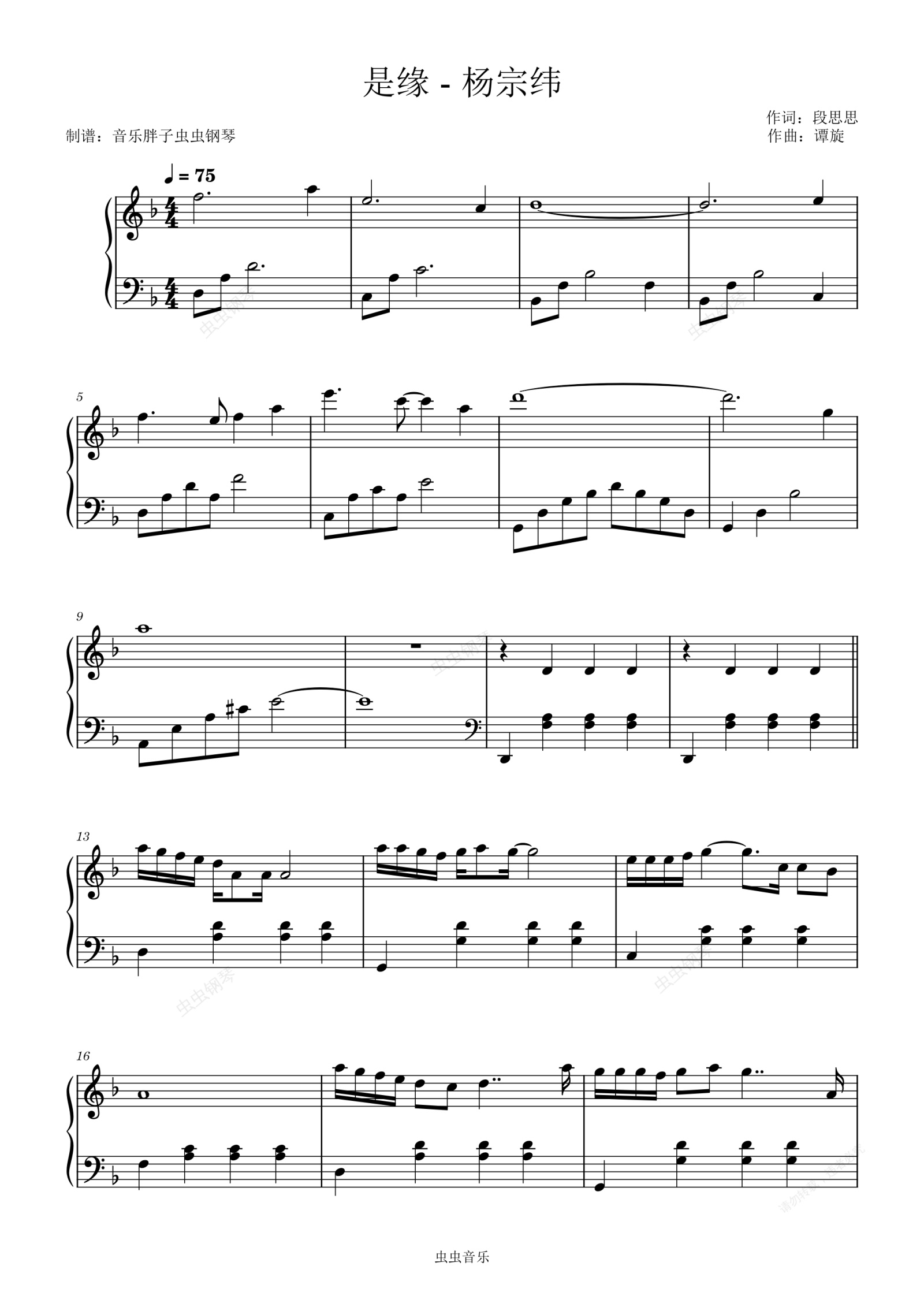 钢琴谱:是缘 - 杨宗纬