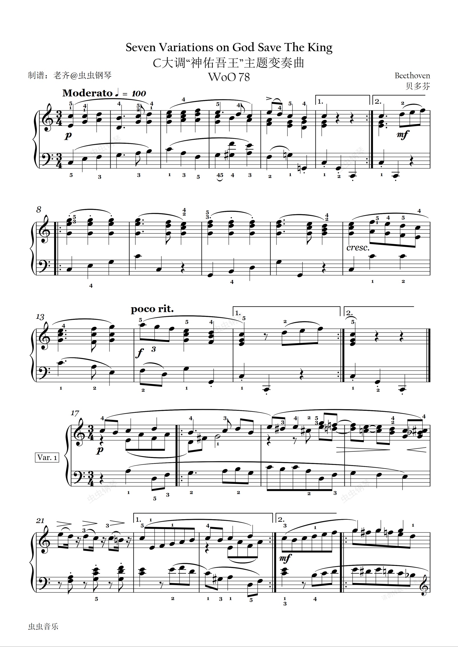 【贝多芬】C大调“神佑吾王”主题变奏曲 Seven Variations on God Save The King
