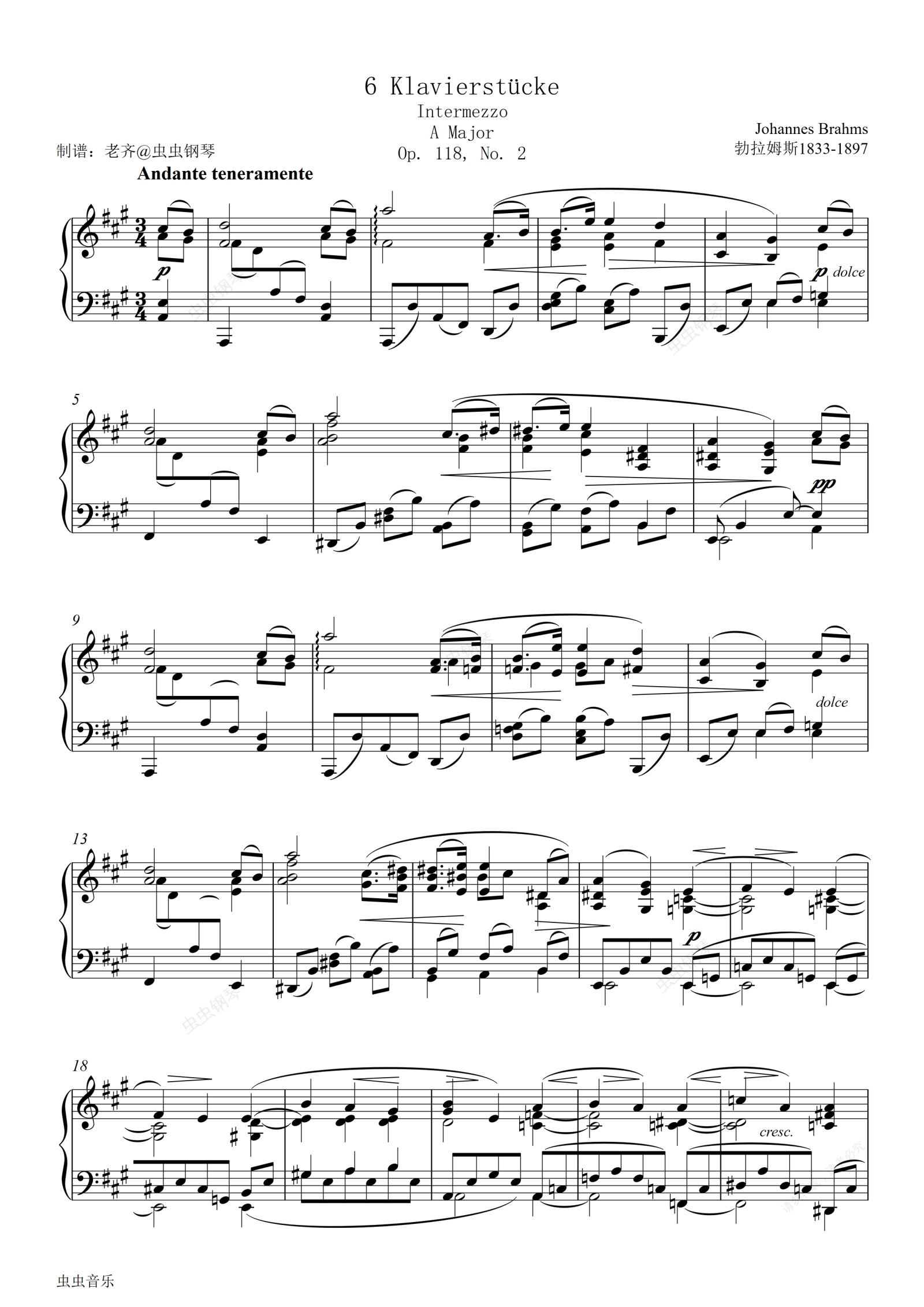 钢琴谱:【勃拉姆斯】间奏曲/Brahms Intermezzo Op.118 No.2