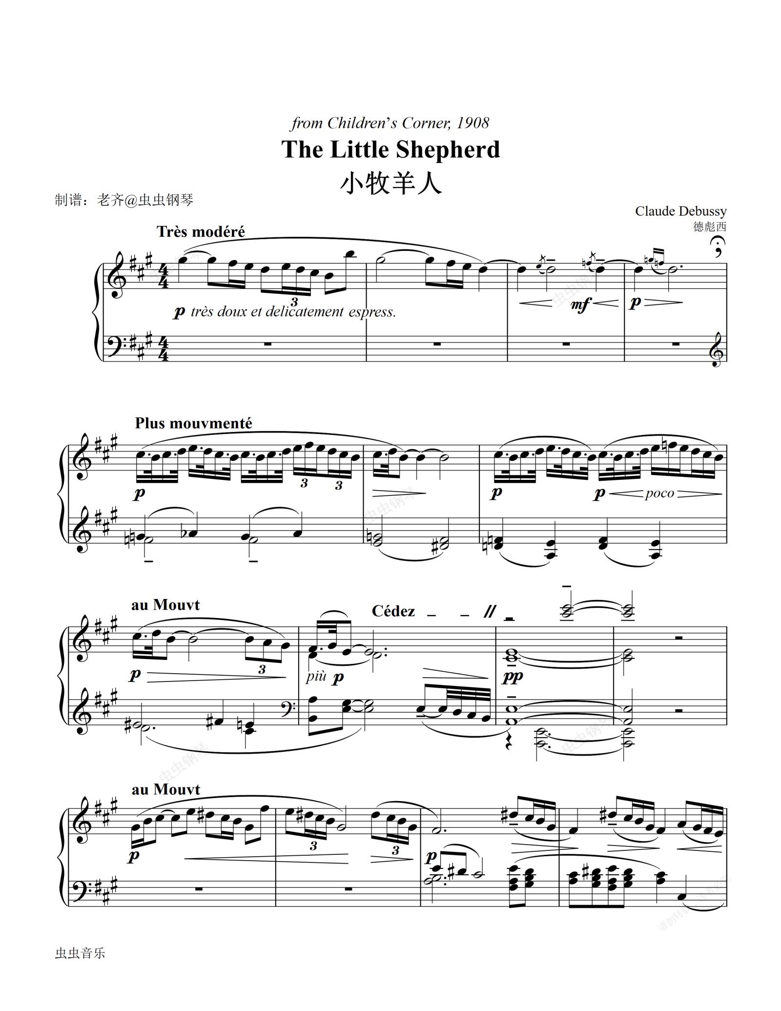 钢琴谱:【德彪西】小牧羊人The Little Shepherd