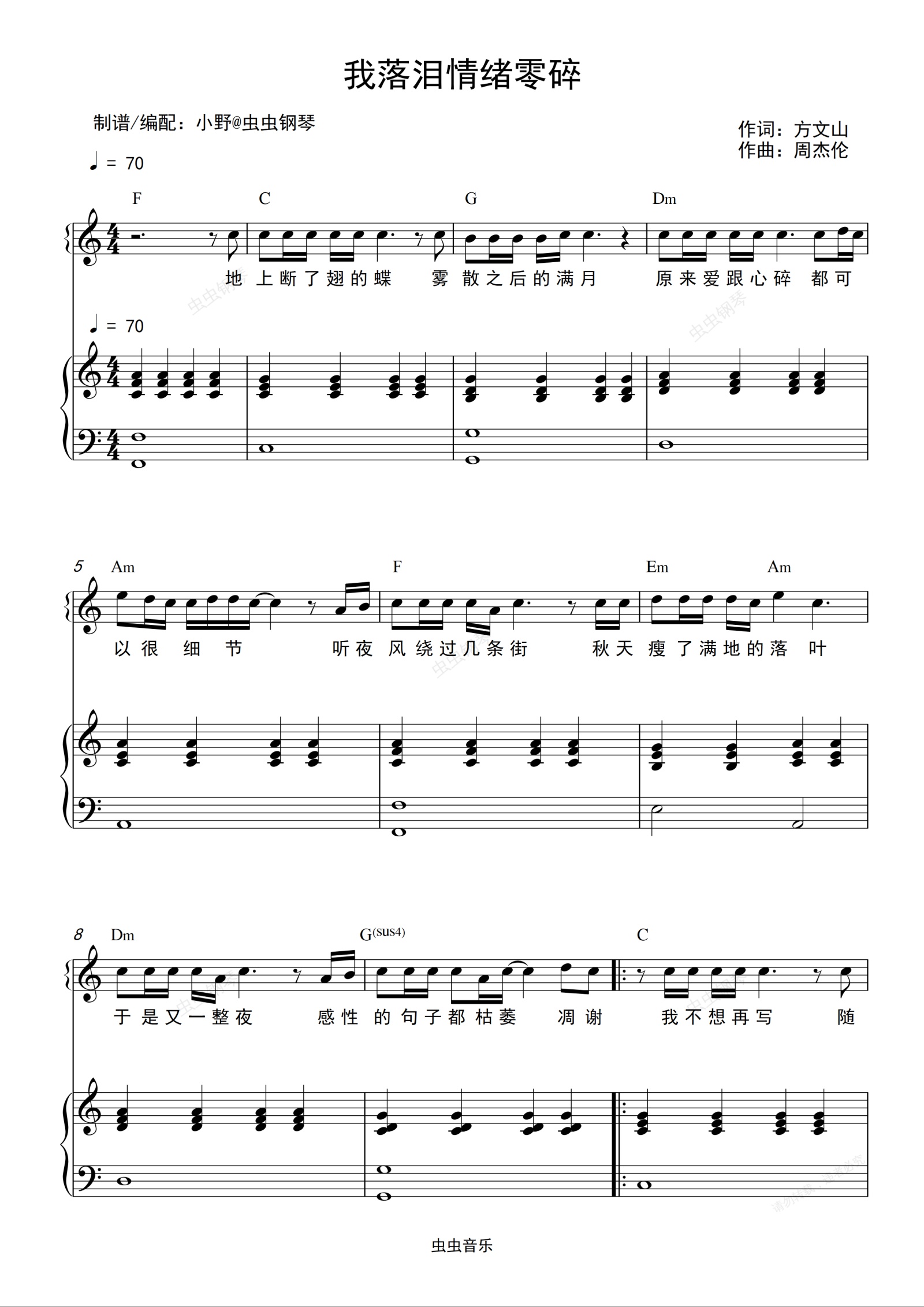 钢琴谱:我落泪情绪零碎(和弦弹唱版)