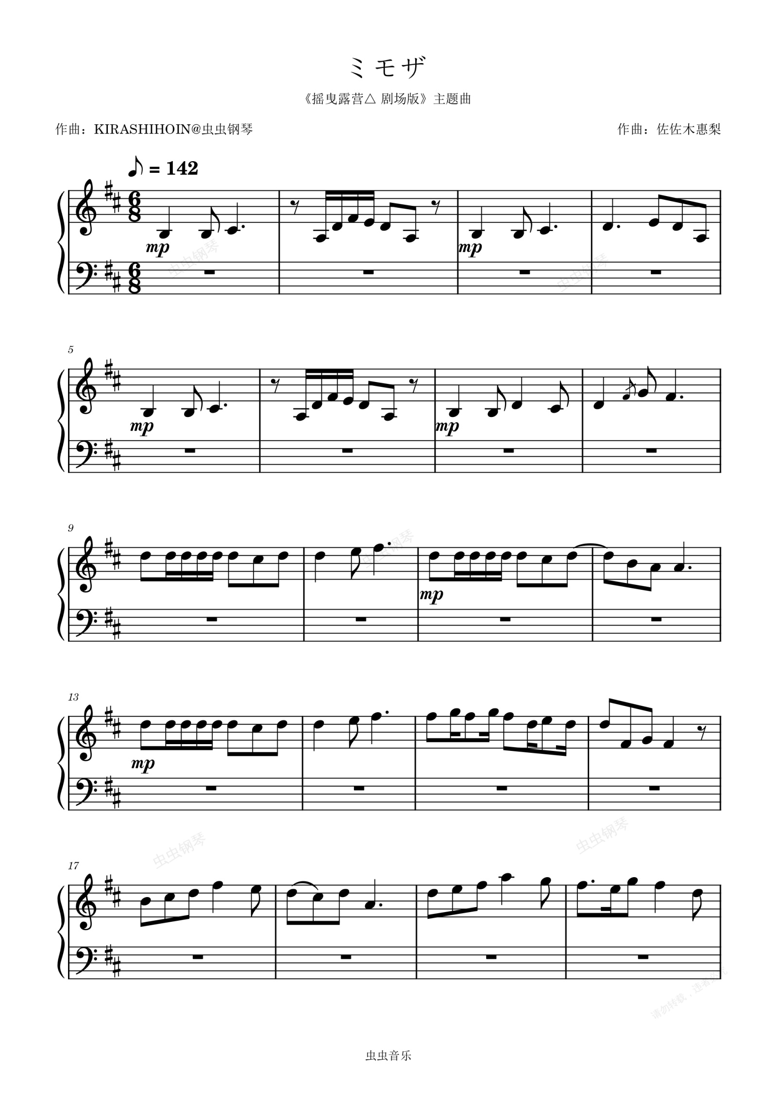 钢琴谱:ミモザ(《摇曳露营△ 剧场版》主题曲)- 佐佐木惠梨