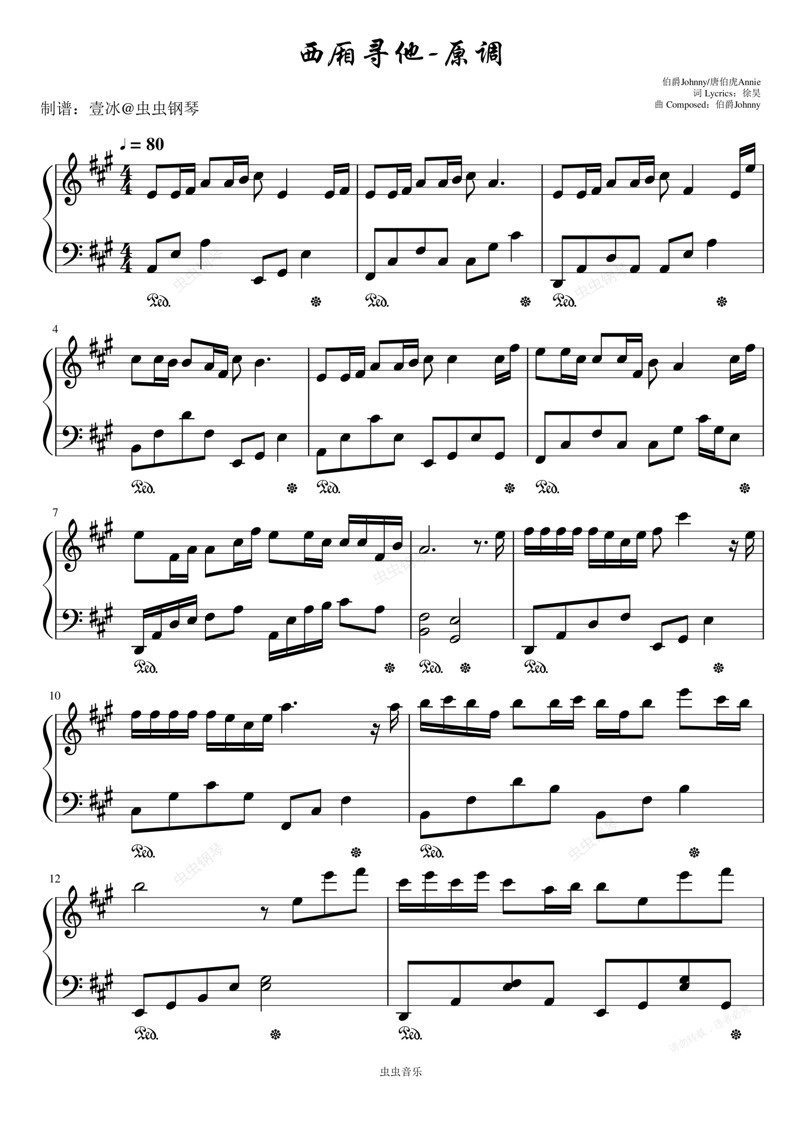 钢琴谱:西厢寻他// 伯爵Johnny/唐伯虎Annie-原调 简单易上手