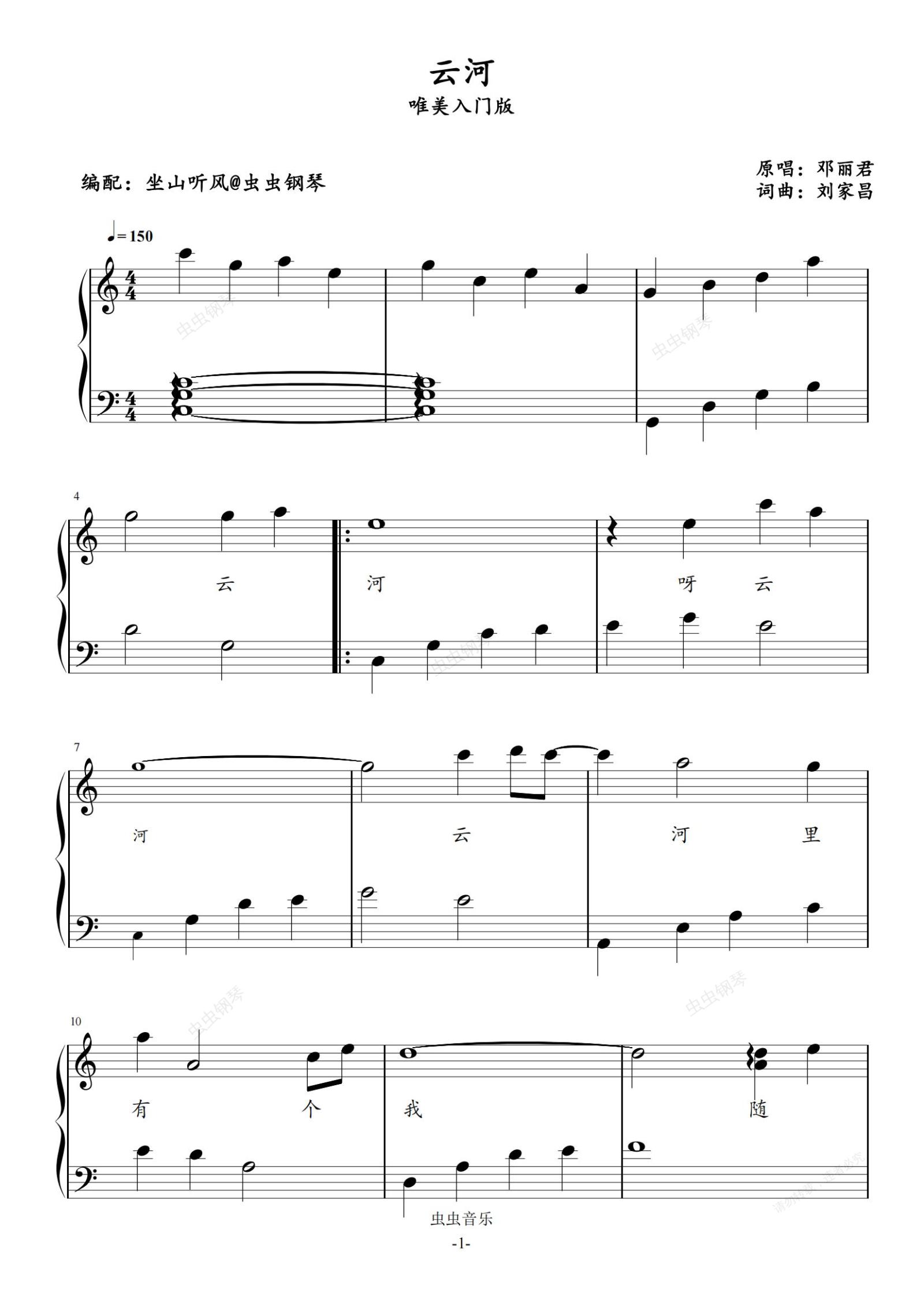 钢琴谱:云河——唯美入门版