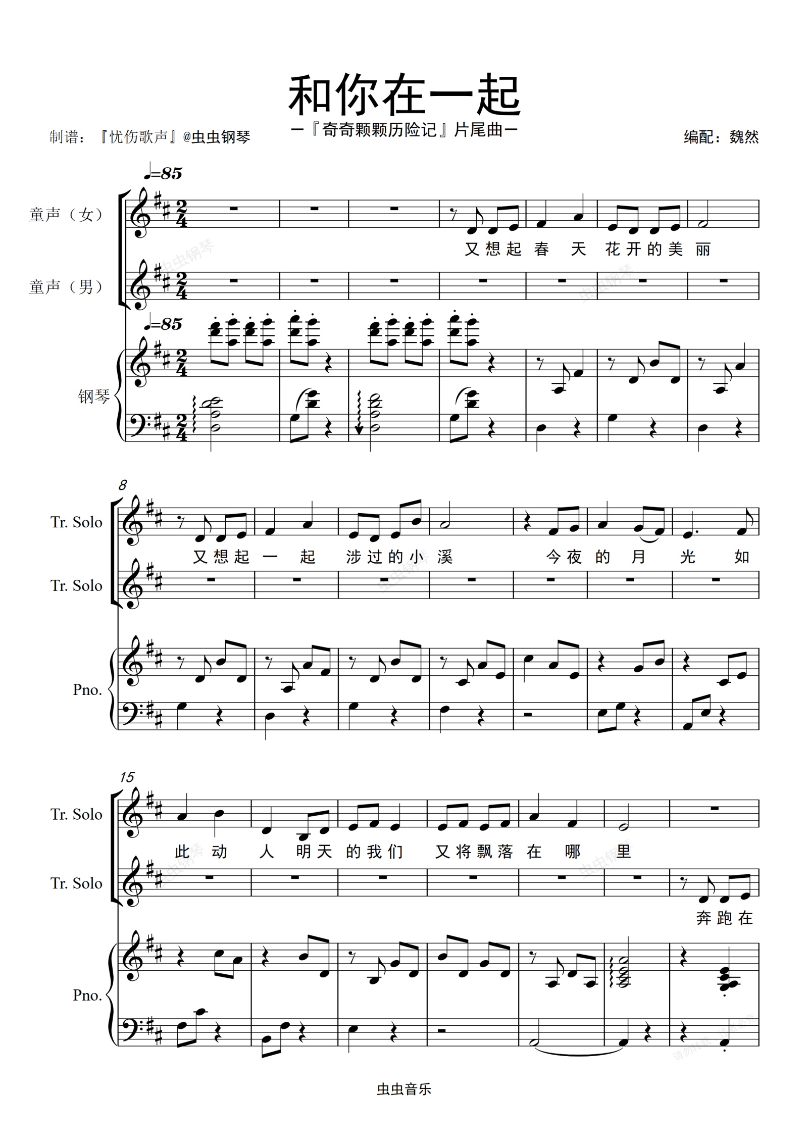 钢琴谱:【奇奇颗颗历险记】片尾曲——和你在一起(合唱谱)
