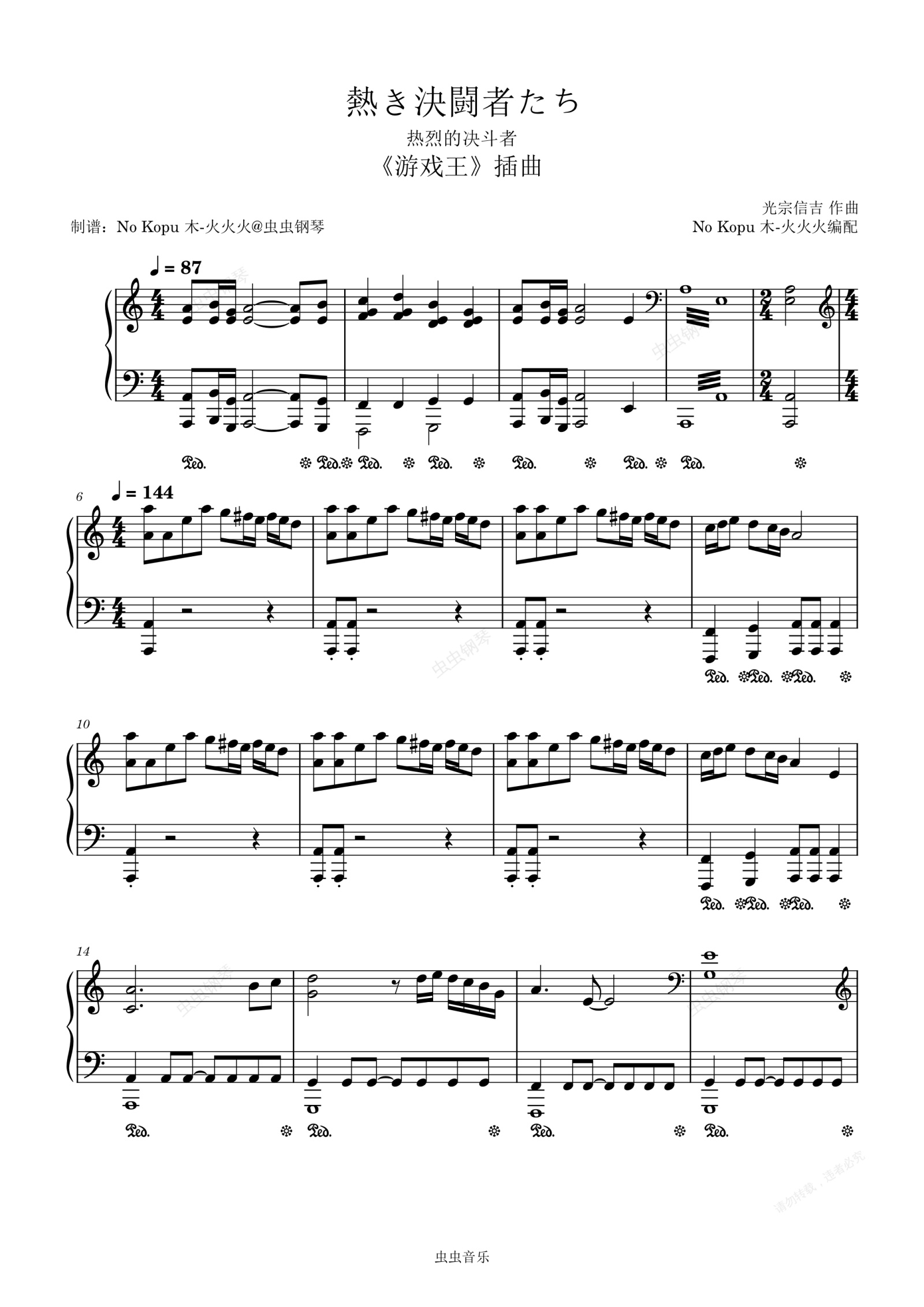 钢琴谱:怀念高桥老师《热烈的决斗者》C