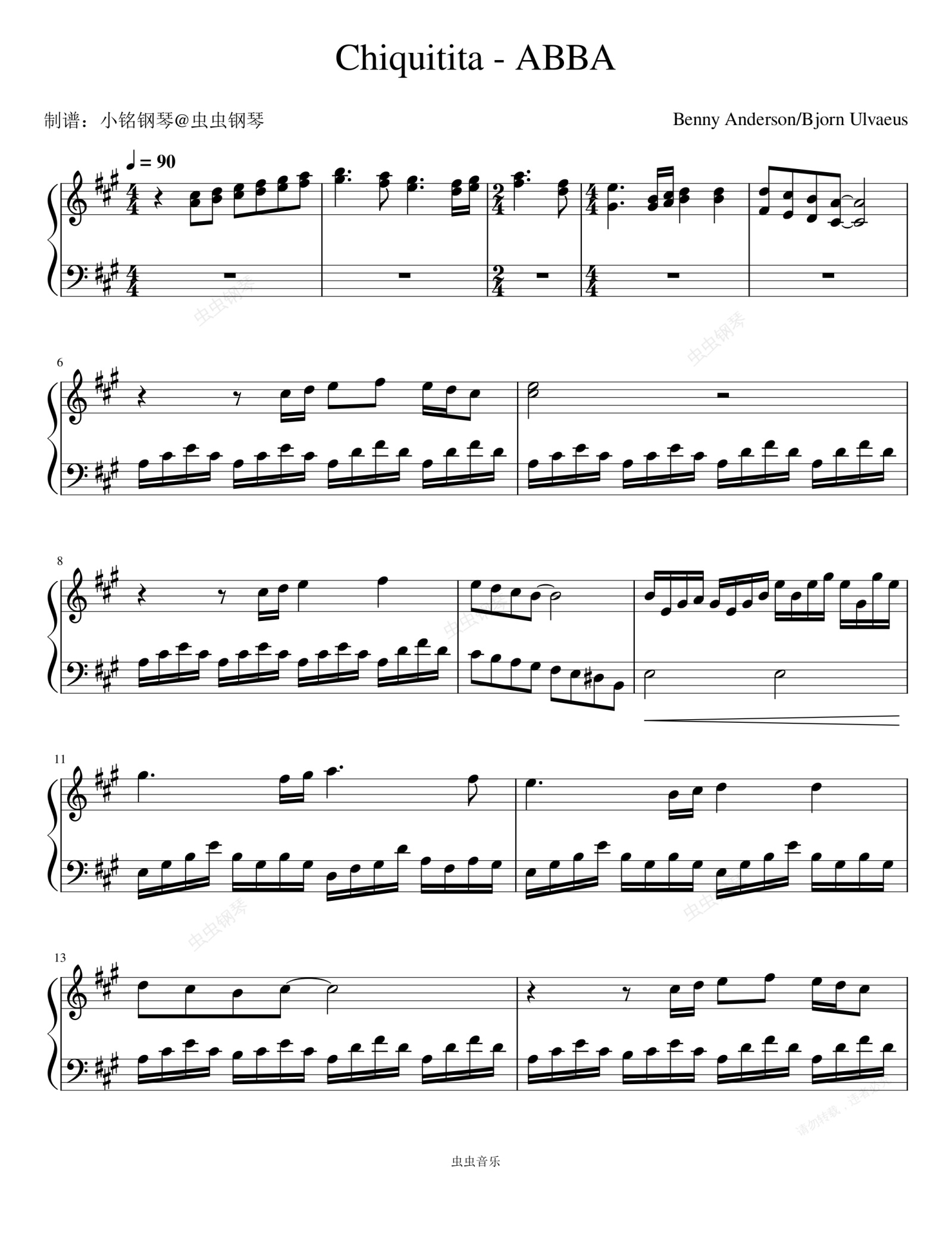 钢琴谱:Chiquitita - ABBA