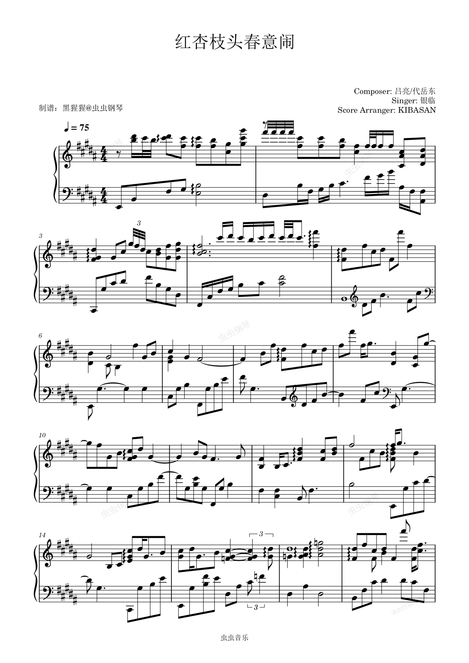 钢琴谱:梦华录 - 红杏枝头春意闹