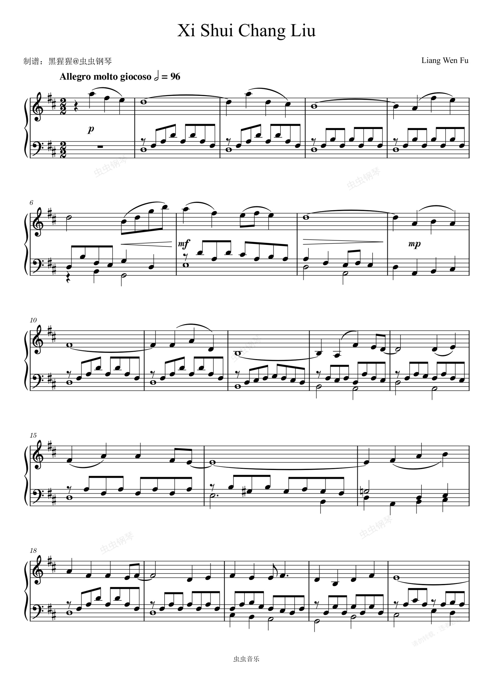 钢琴谱:Xi Shui Chang Liu (细水长流) arranged for the piano