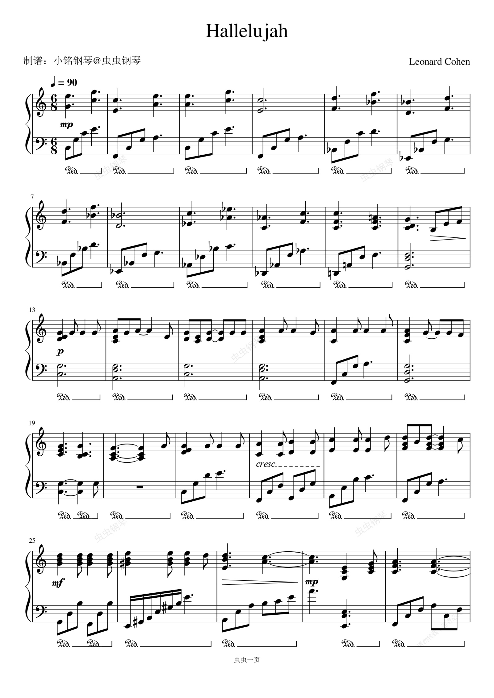 钢琴谱:Hallelujah - Leonard Cohen (莱昂纳德·科恩)