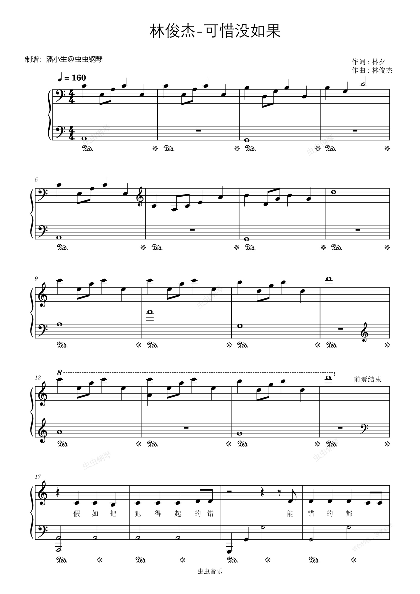 钢琴谱:可惜没如果,林俊杰,C调易弹好听版,独奏版