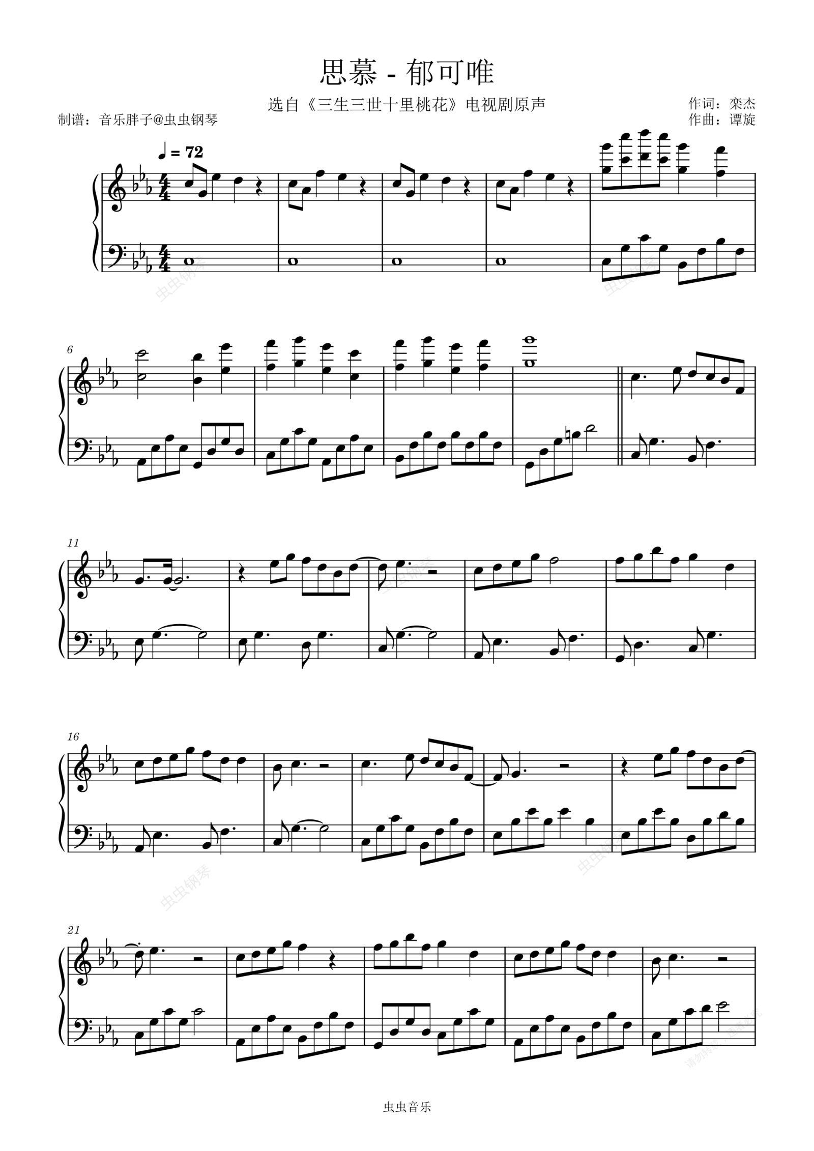 钢琴谱:思慕 - 郁可唯【原声独奏】