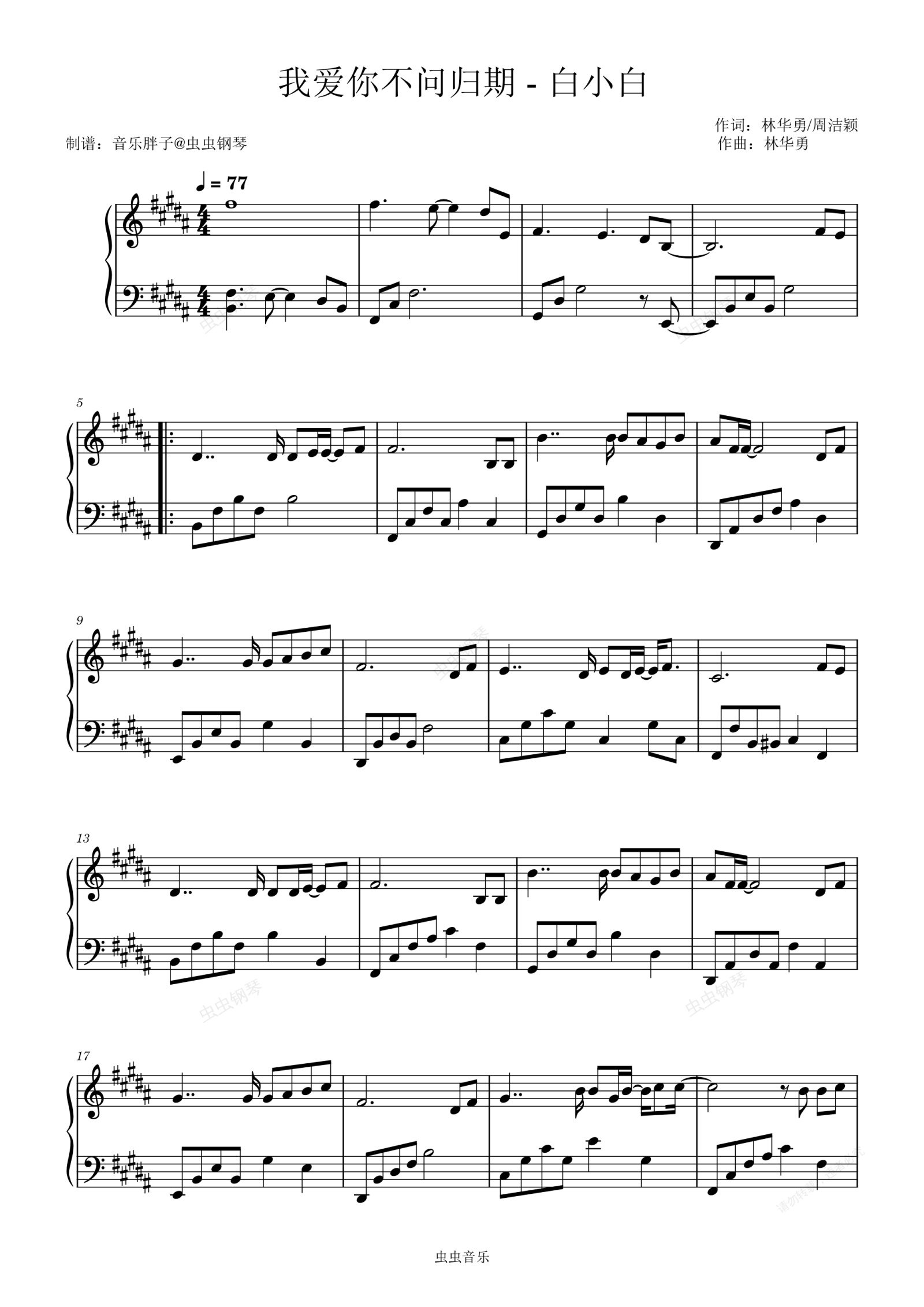 钢琴谱:我爱你不问归期 - 白小白【原声独奏】