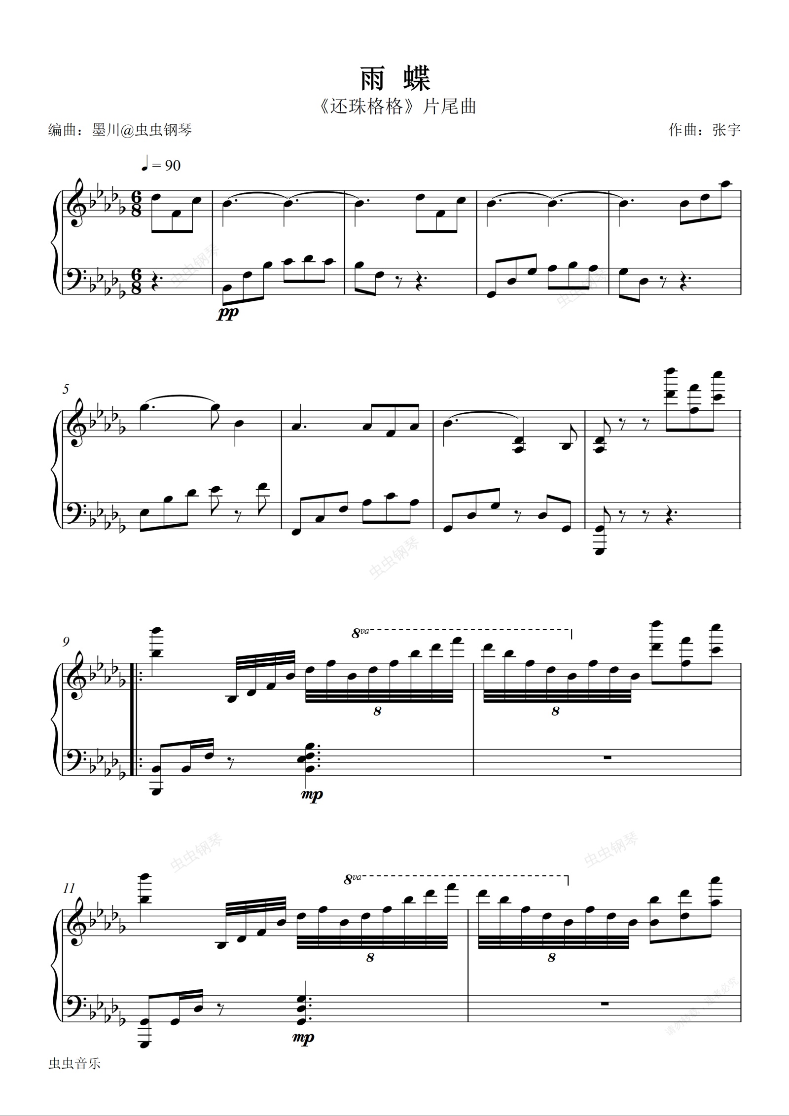钢琴谱:雨蝶—李翊君—原调完美演奏