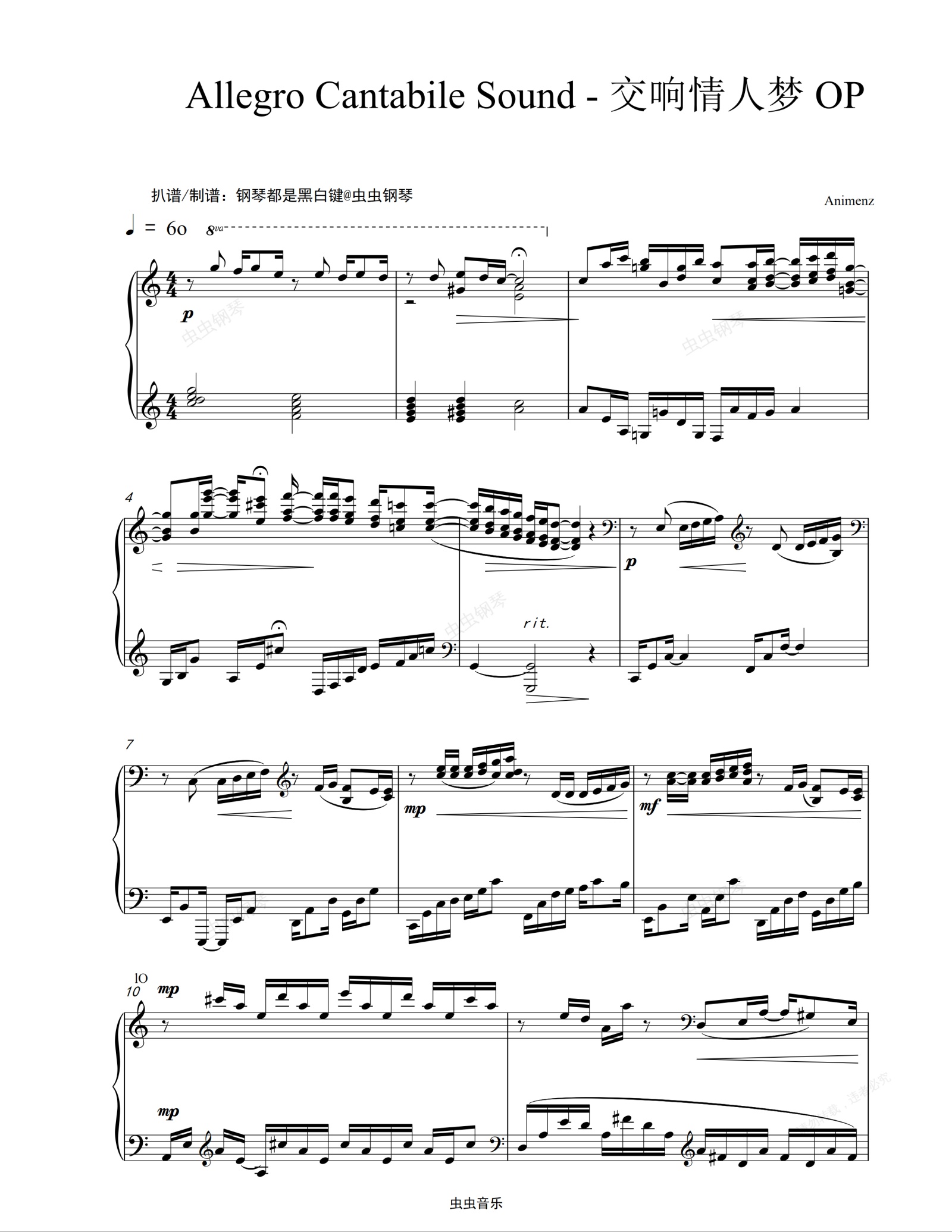 钢琴谱:【Animenz扒谱】Allegro Cantabile Sound - 交响情人梦 OP
