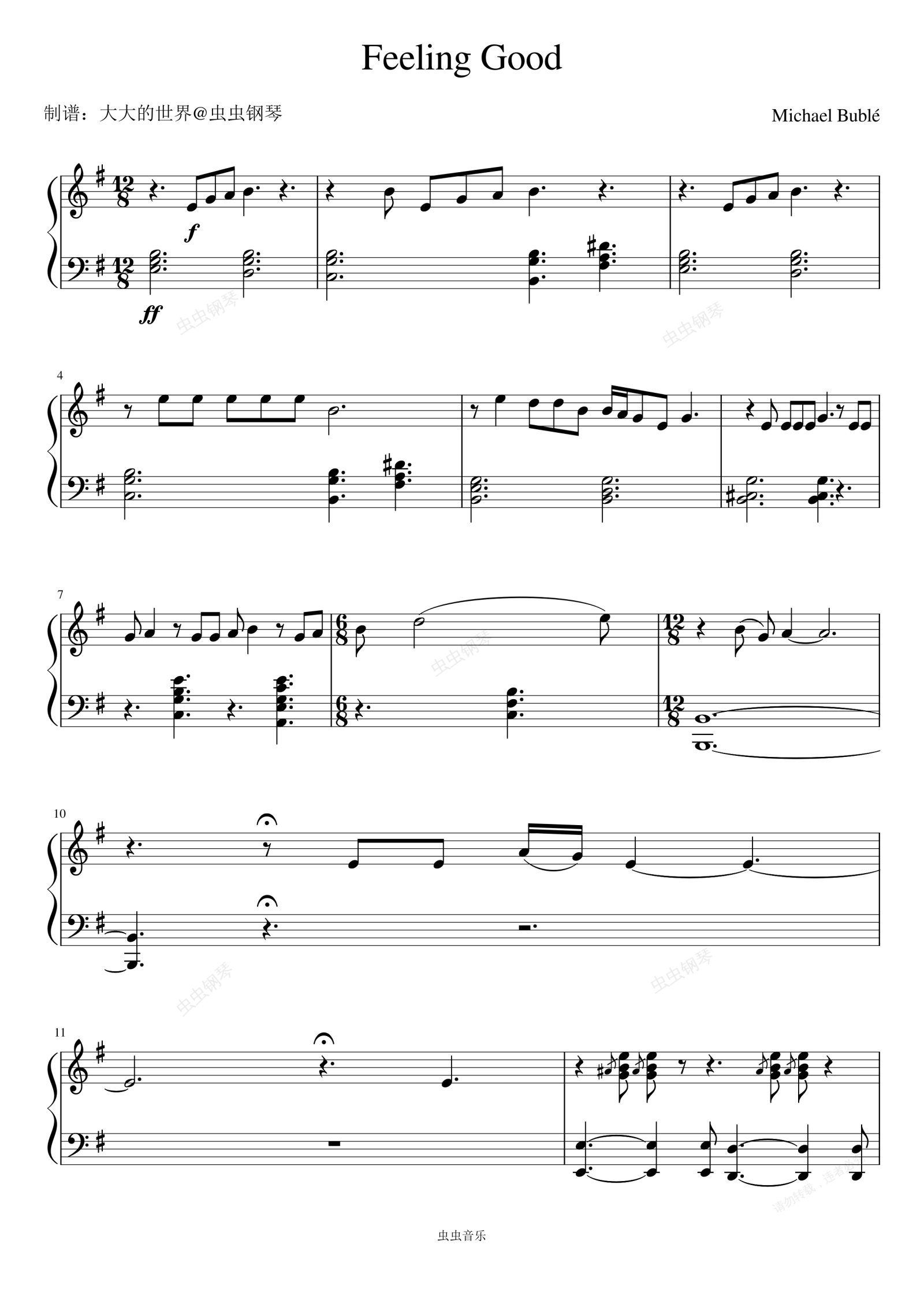 钢琴谱:Feeling Good 【爵士风格 849难度】