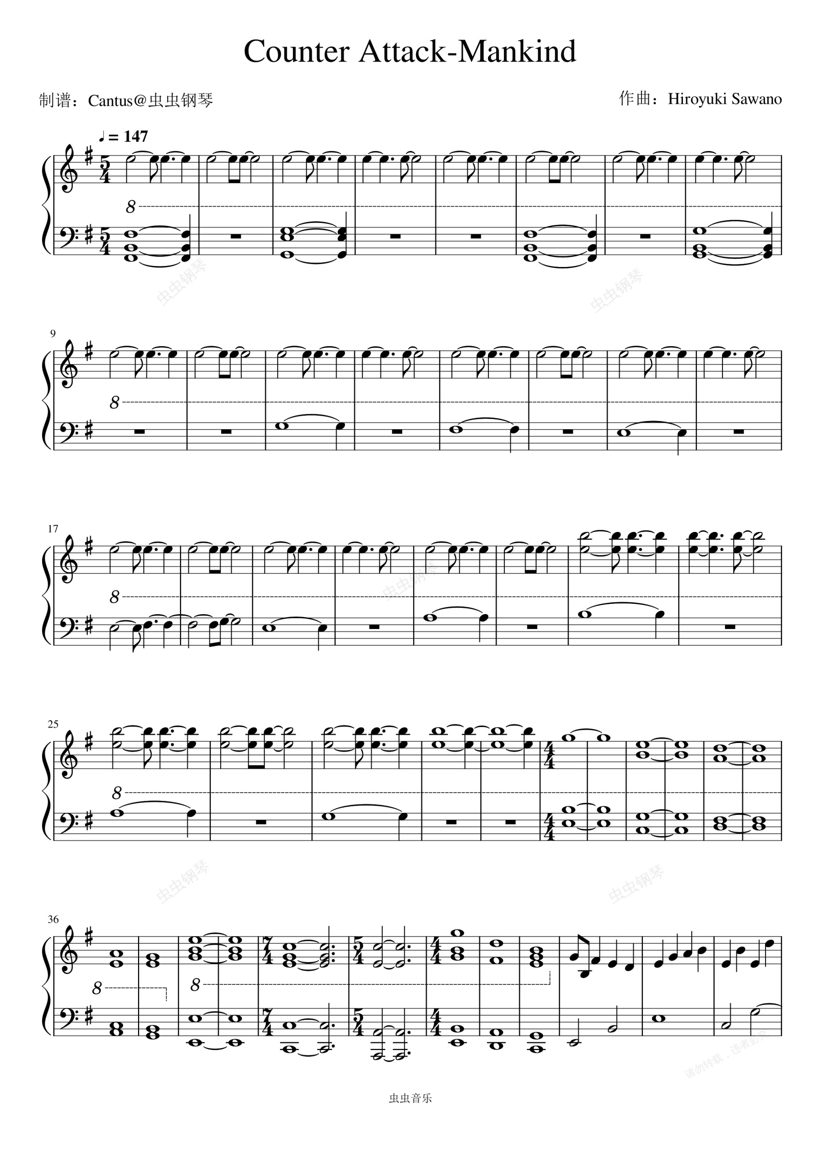 钢琴谱:Counter Attack-Mankind/进击的巨人-Hiroyuki Sawano