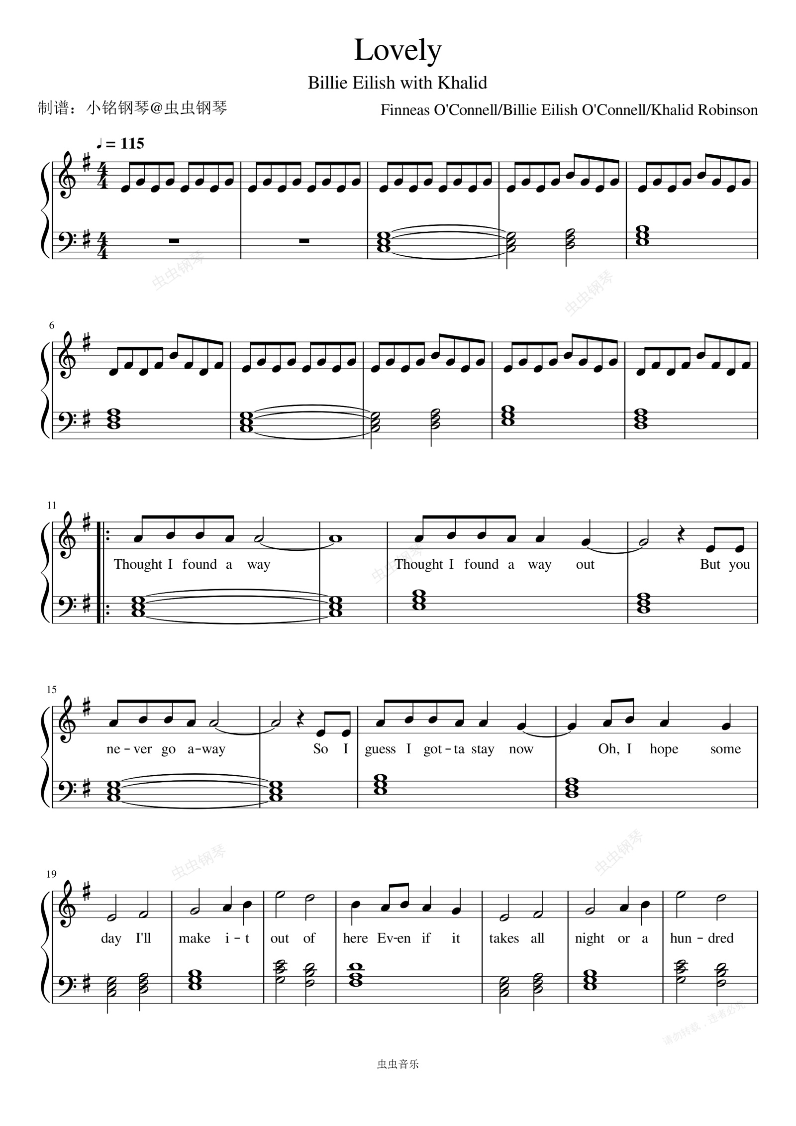 钢琴谱:lovely - Billie Eilish/Khalid 独奏