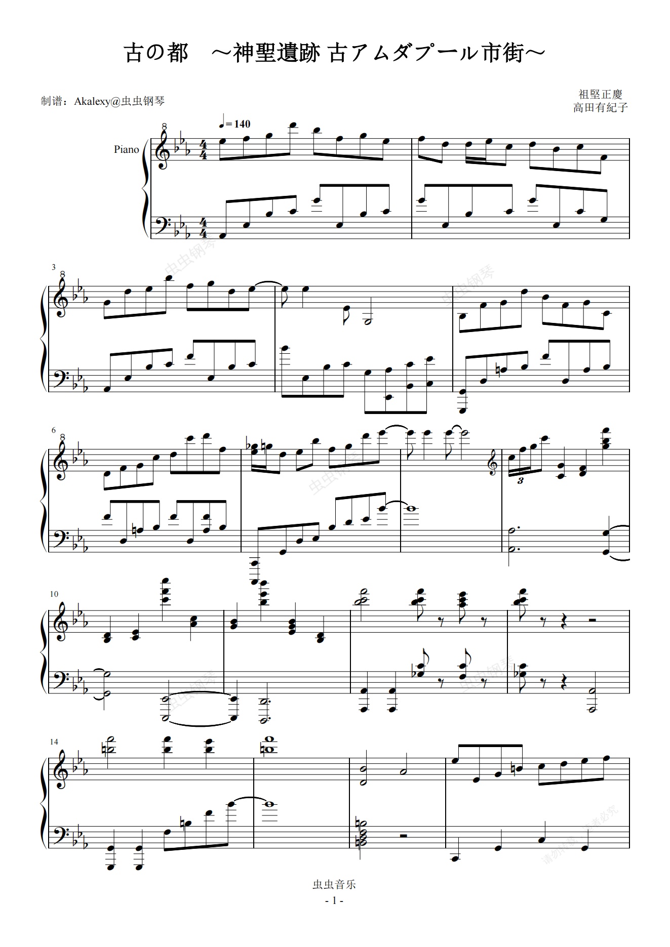 钢琴谱:FF14【神圣遗迹古市街】