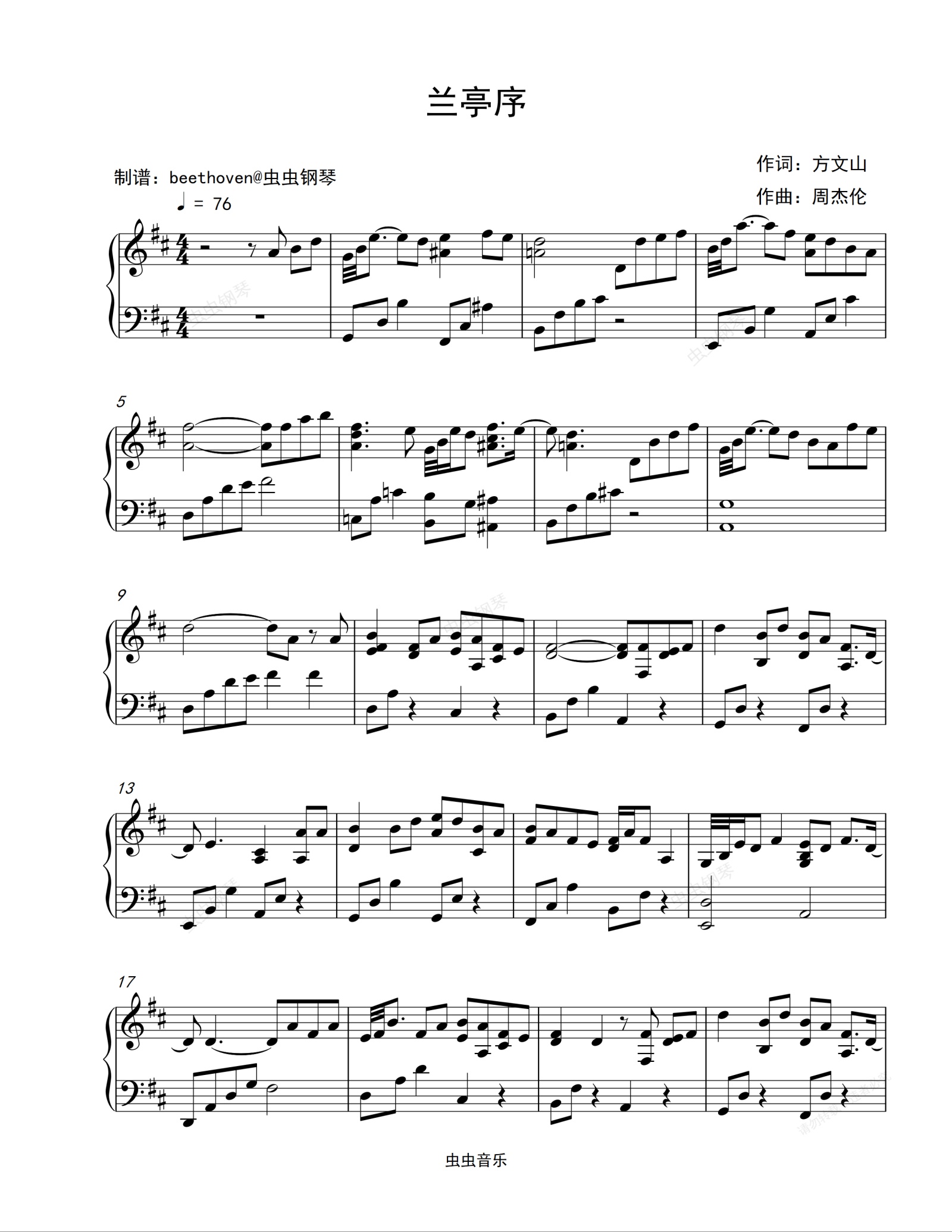 钢琴谱:兰亭序-周杰伦-简单版