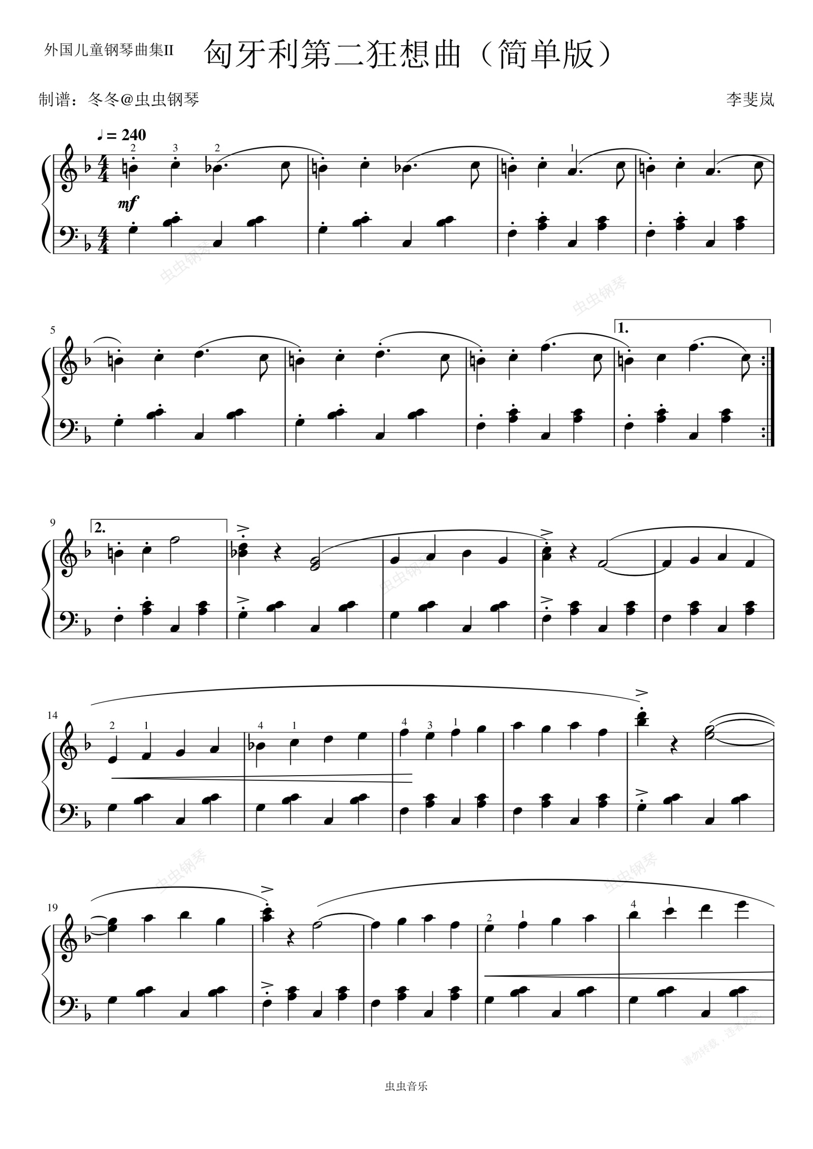 钢琴谱:匈牙利第二狂想曲(简单版)
