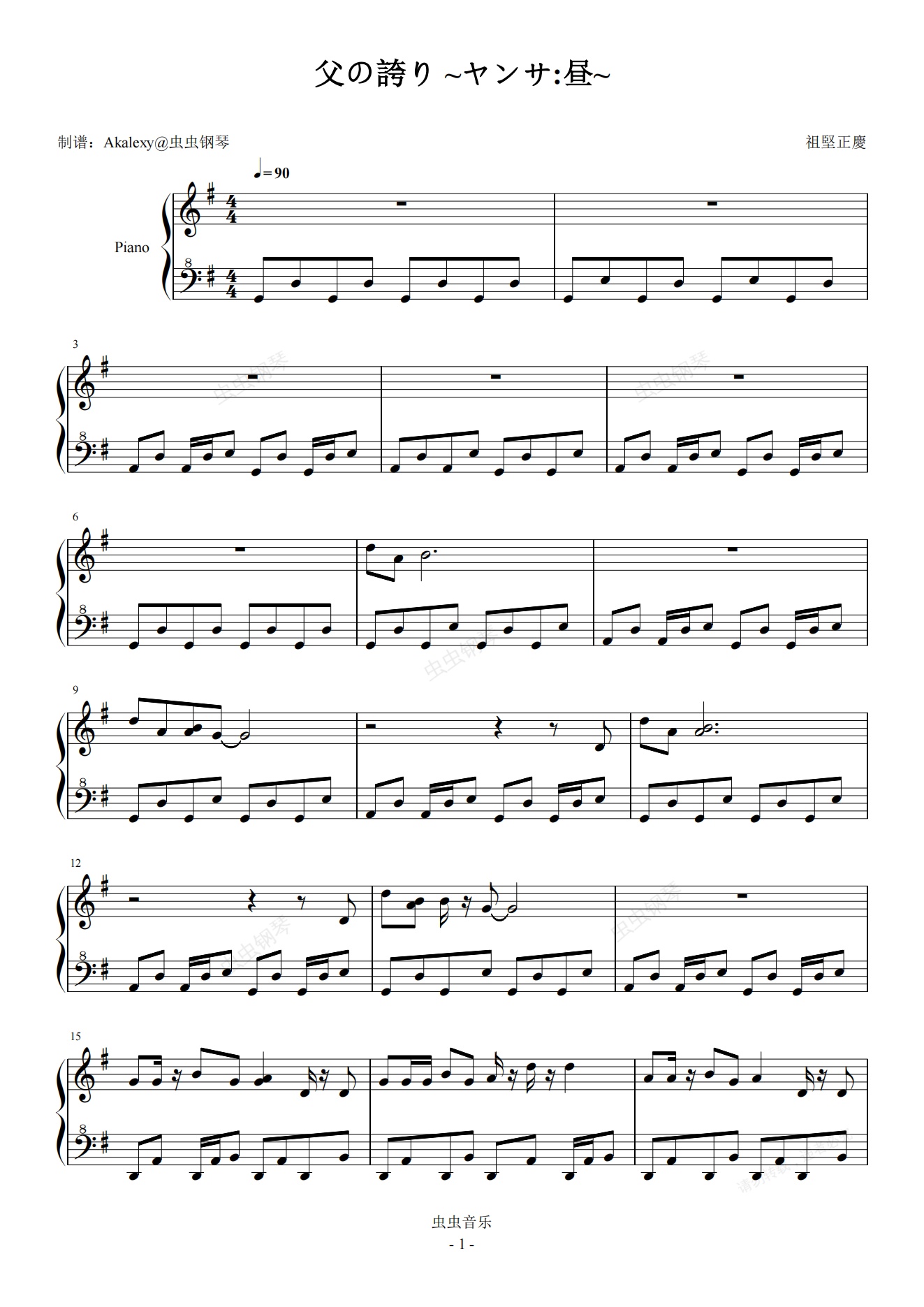 钢琴谱:FF14【延夏:昼】