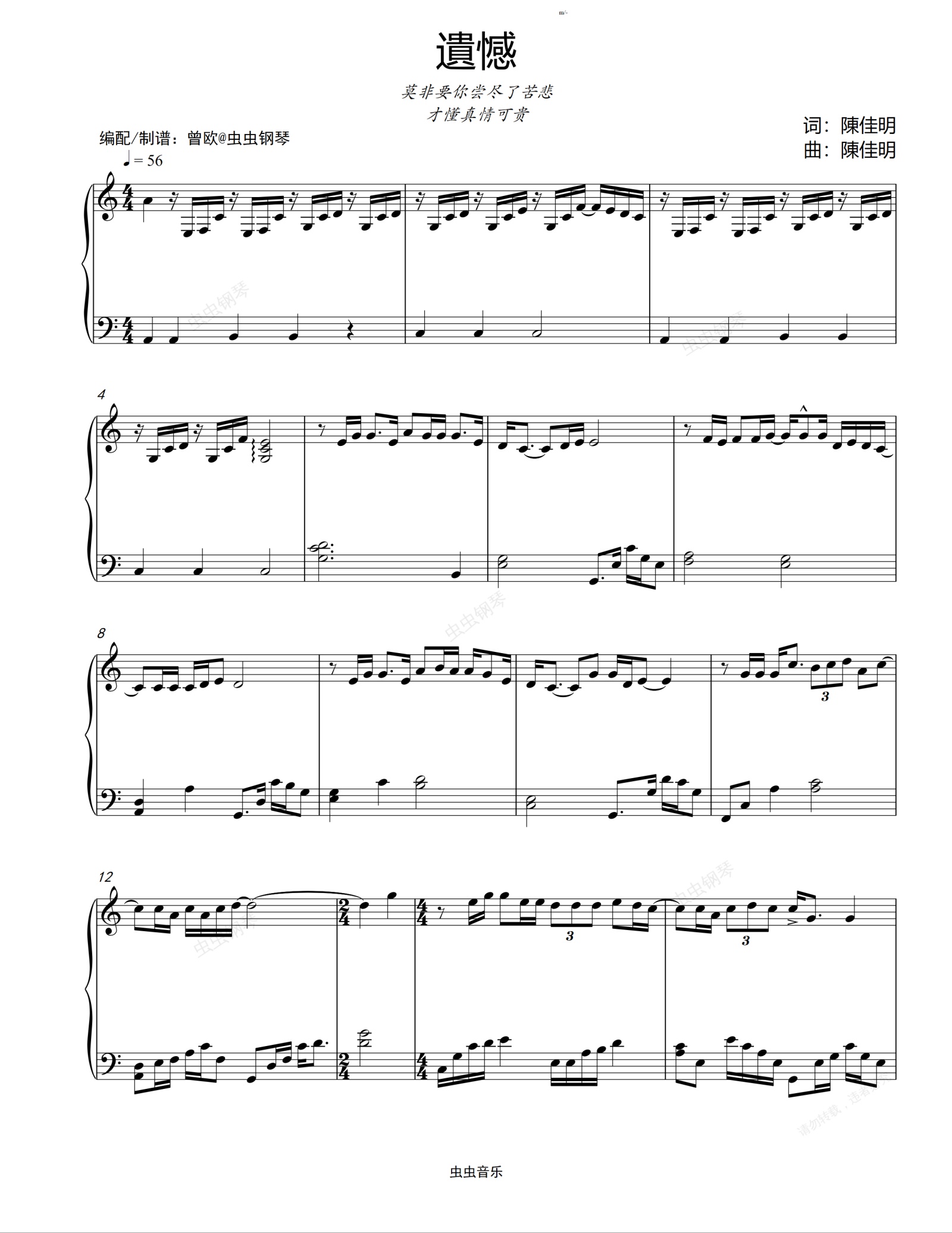 钢琴谱:遗憾 - 陈洁仪(C调易弹)