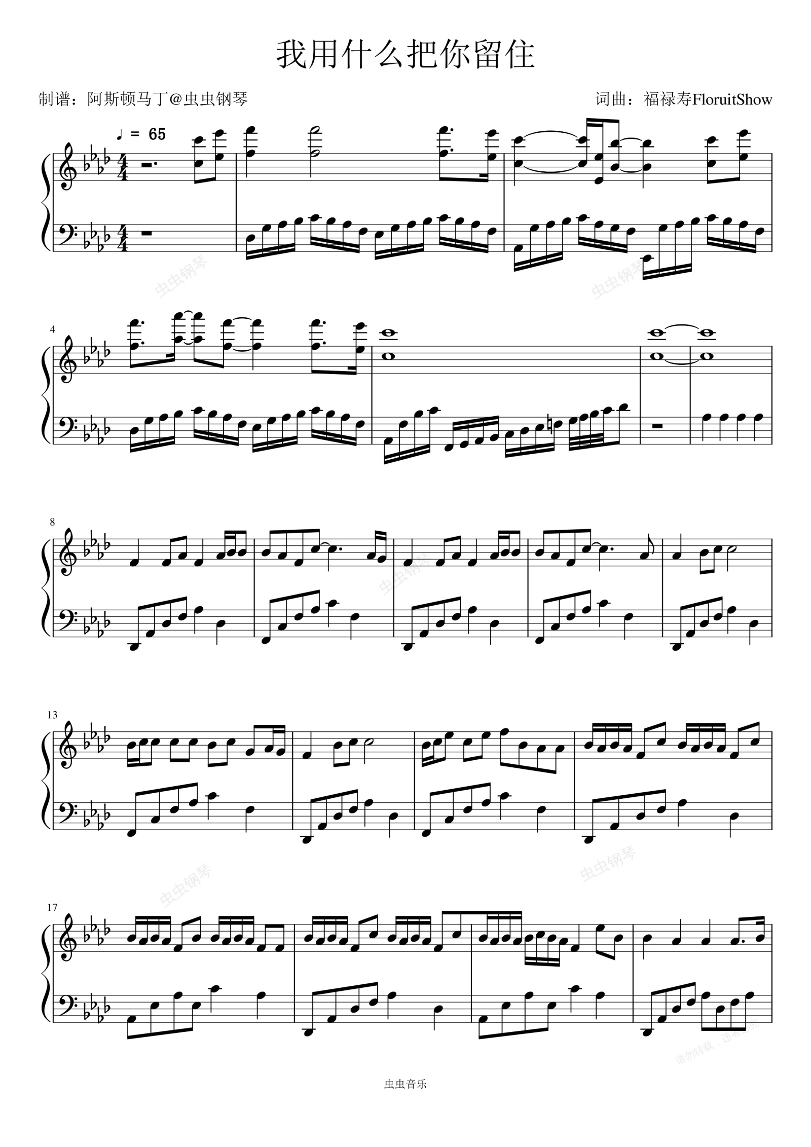 钢琴谱:我用什么把你留住 - 福禄寿FloruitShow 独奏