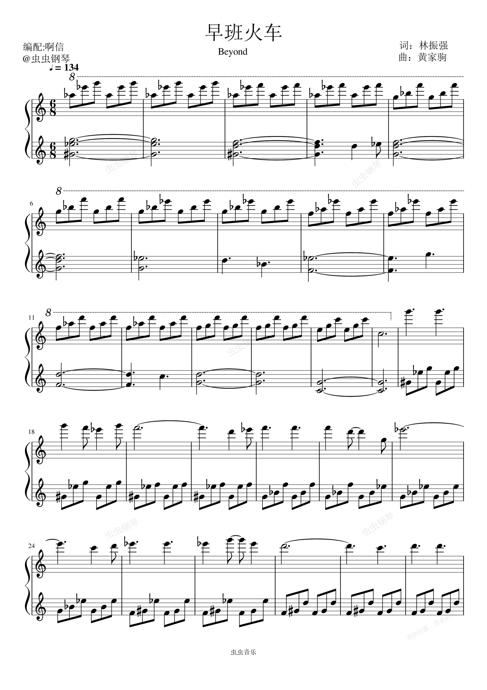 钢琴谱:早班火车-Beyond-啊信编配C调
