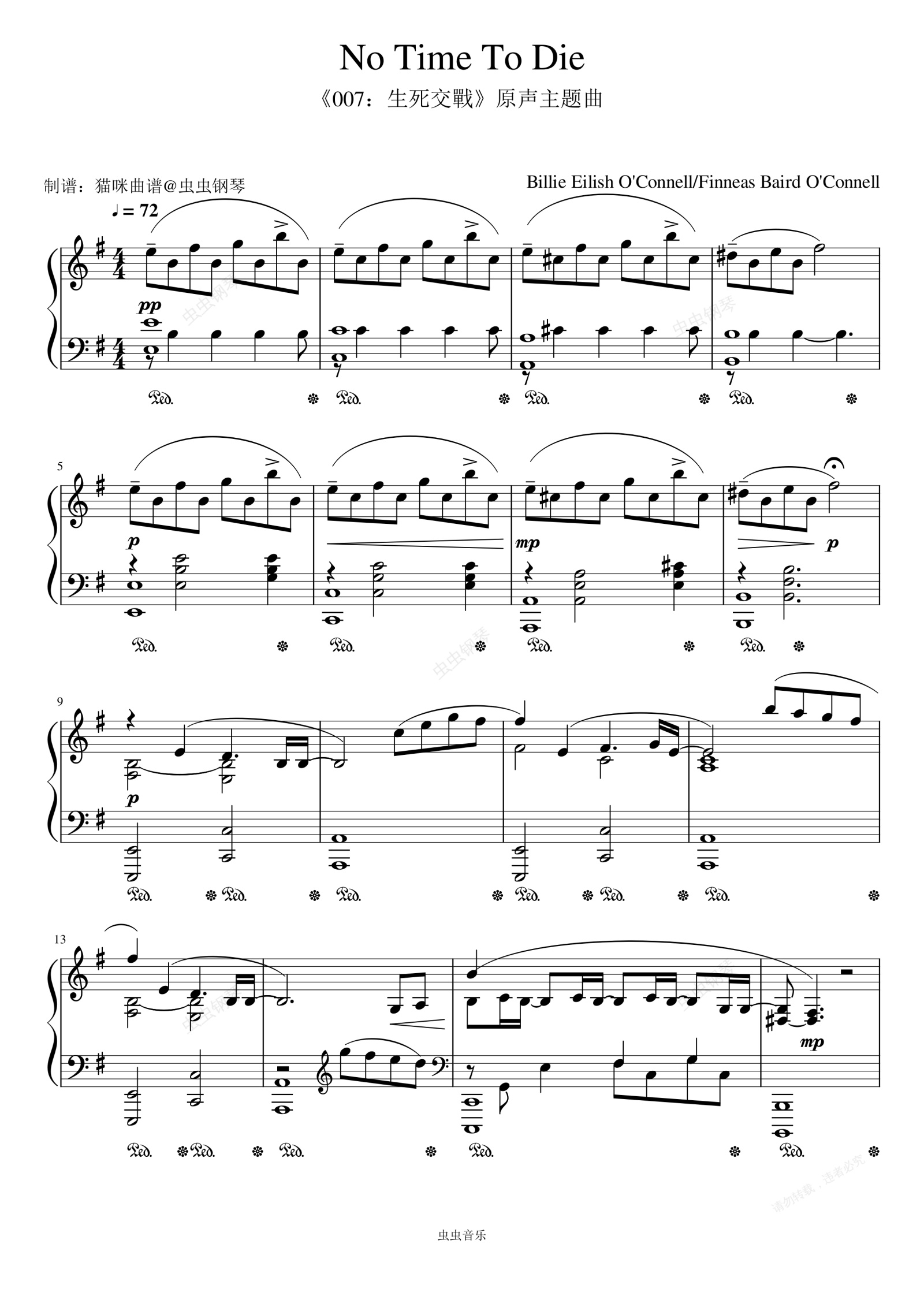 钢琴谱:No Time To Die-《007:生死交戰》原声主题曲 - Billie Eilish 钢琴独奏版