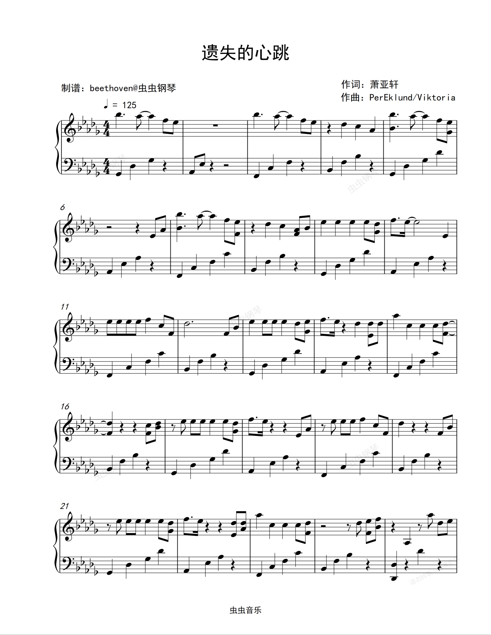 钢琴谱:遗失的心跳-萧亚轩-完美独奏版