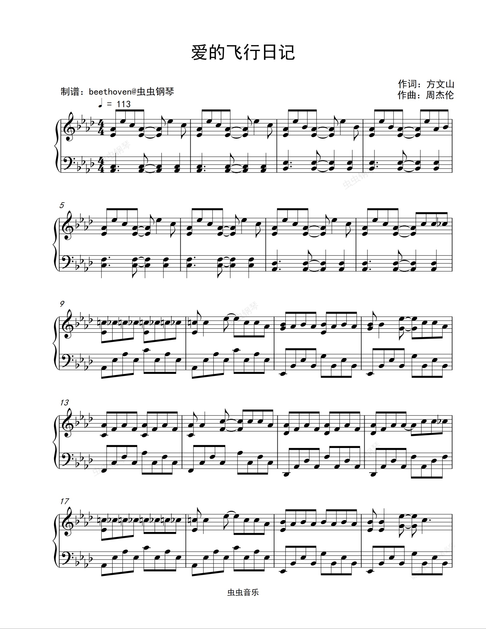 钢琴谱:爱的飞行日记-周杰伦