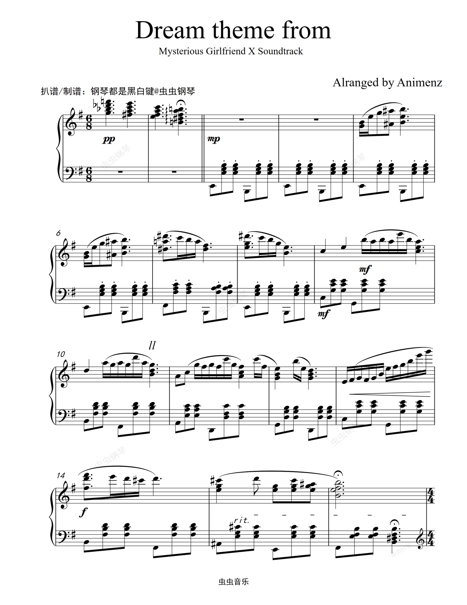 钢琴谱:【Animenz】 Dream theme 谜样女友 X 【爆好听钢琴独奏】