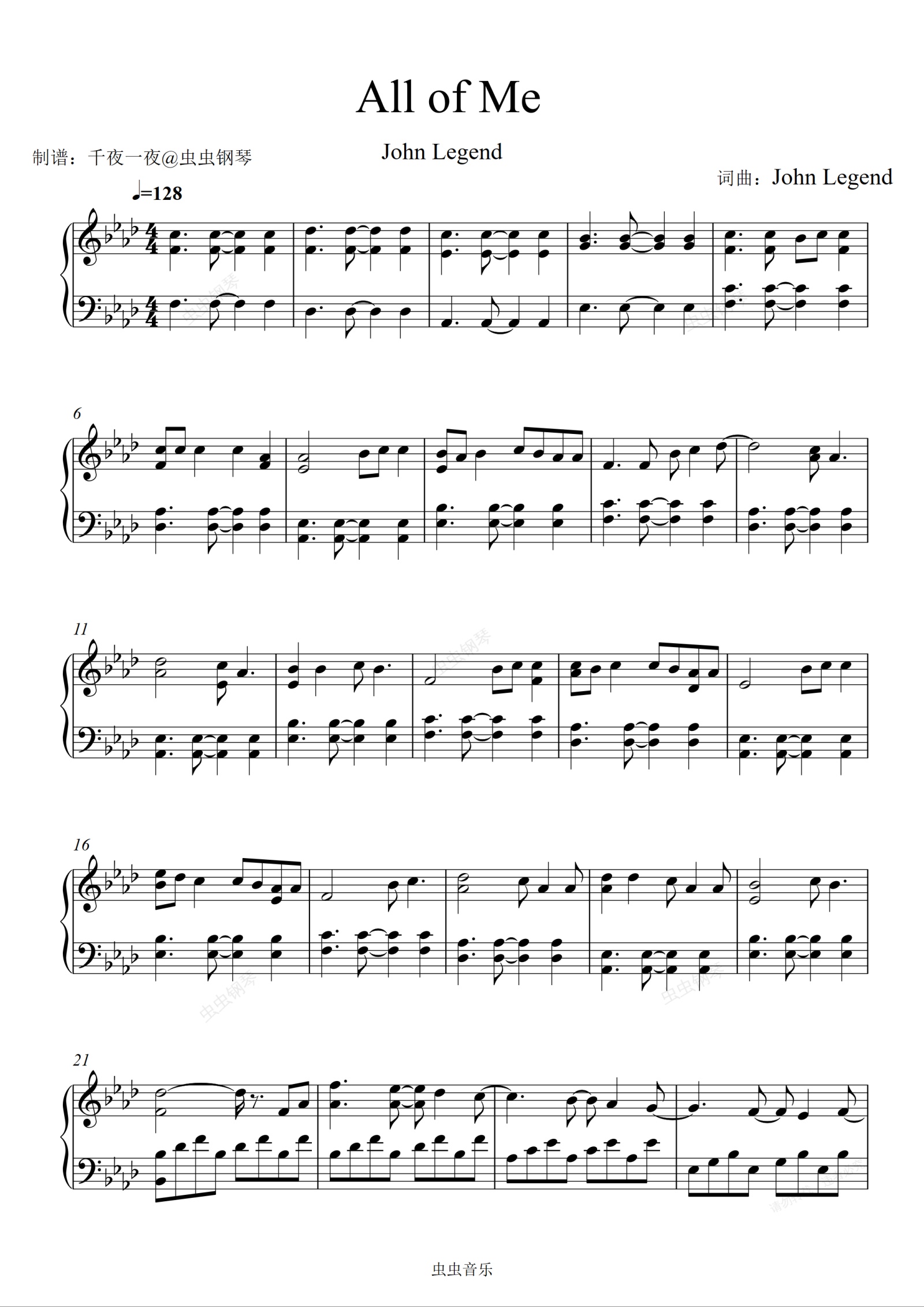钢琴谱:【All of me-John Legend 】因为我的所有,只爱你一个人