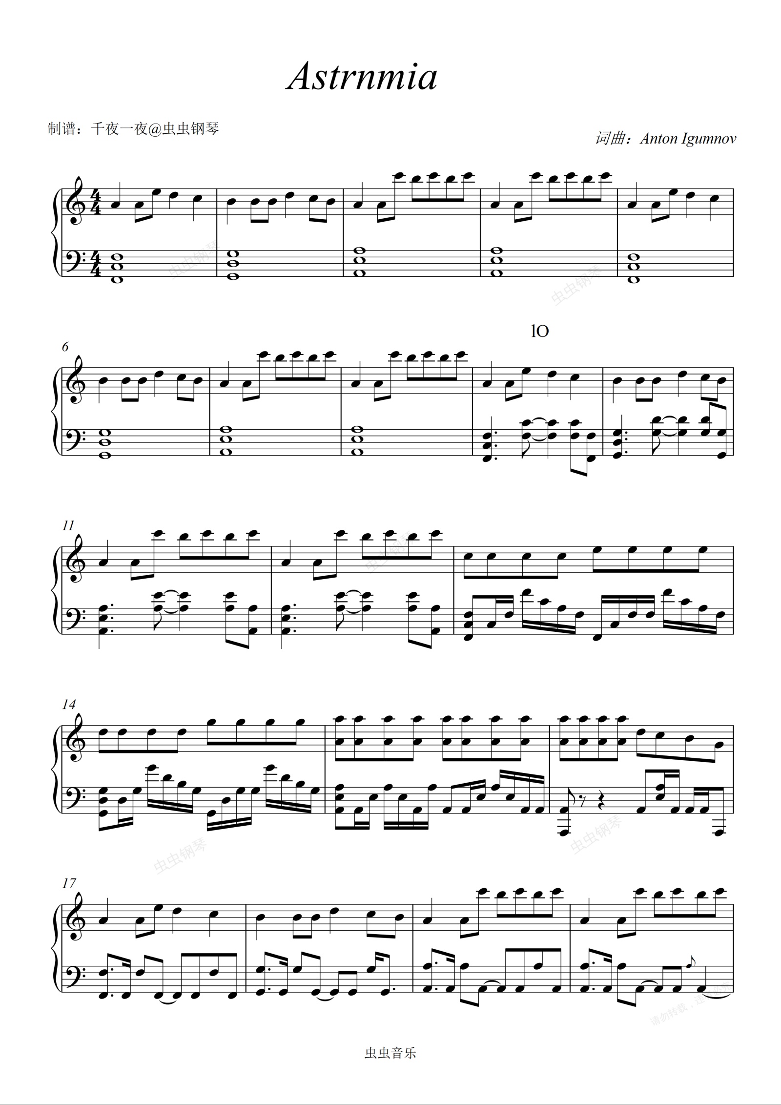 钢琴谱:【黑人抬棺】用钢琴打开《Astronomia》C调版