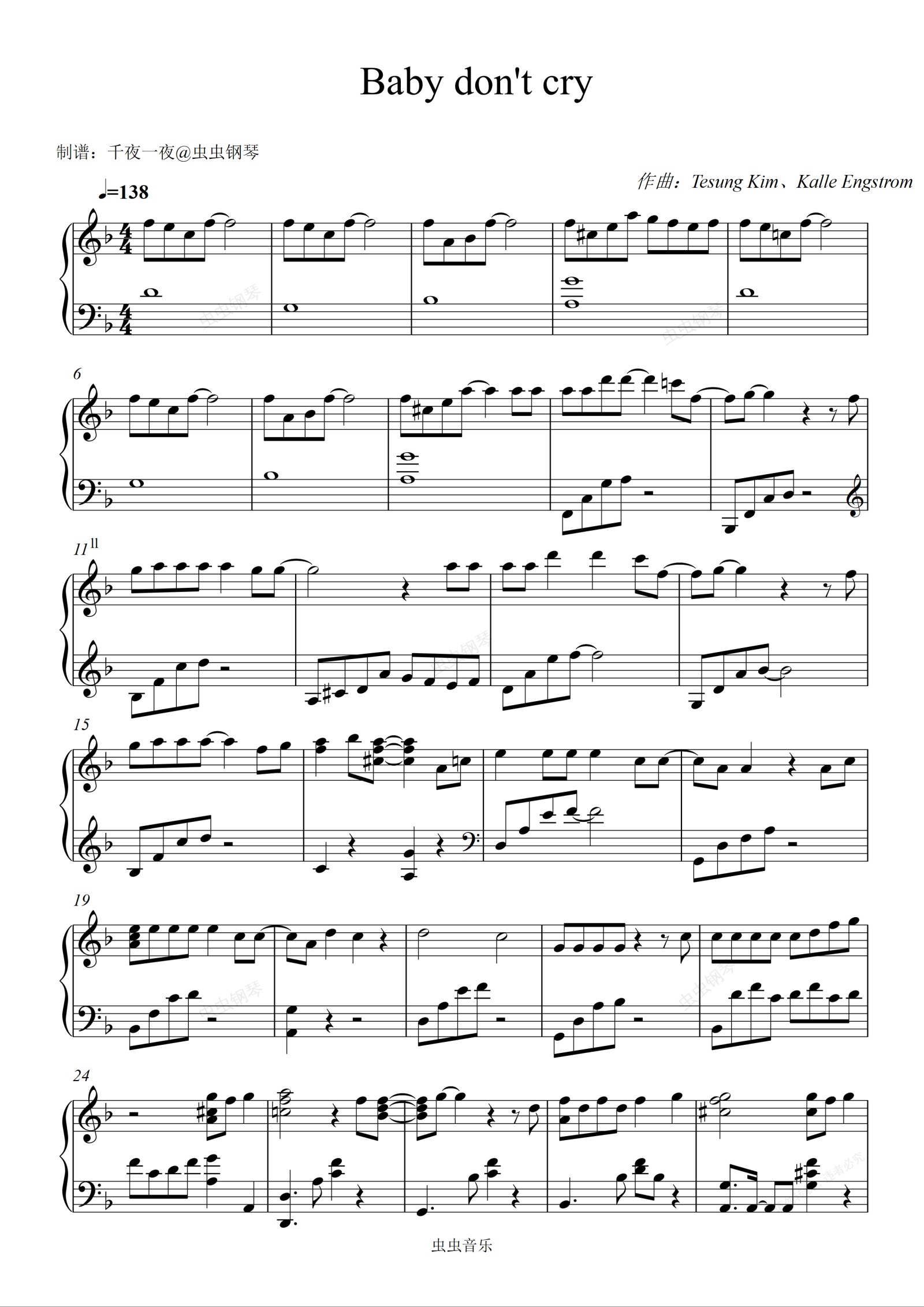 钢琴谱:《Baby dont Cry》好听的前奏入你心了吗