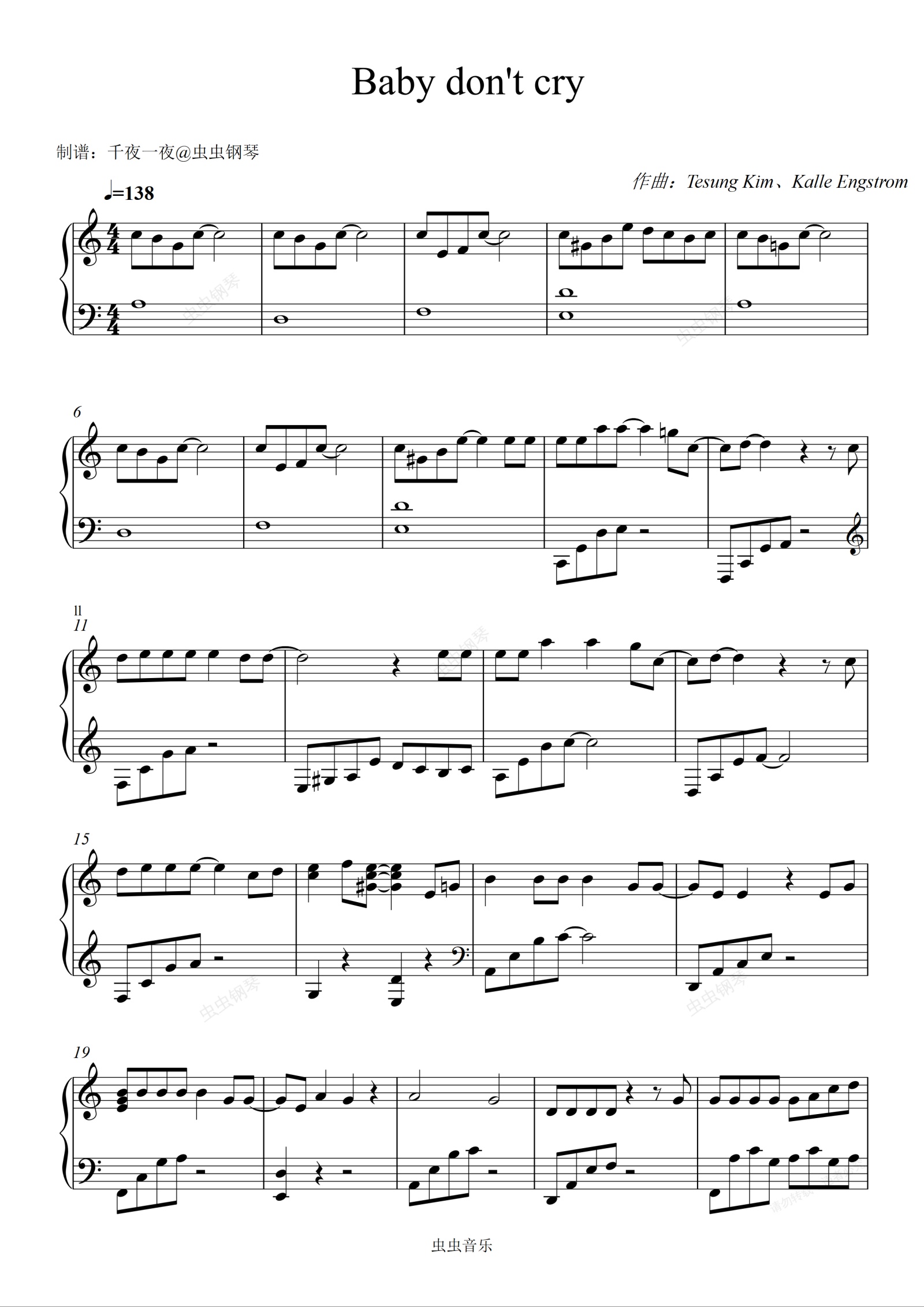 钢琴谱:《Baby dont Cry》好听的前奏入你心了吗C调版