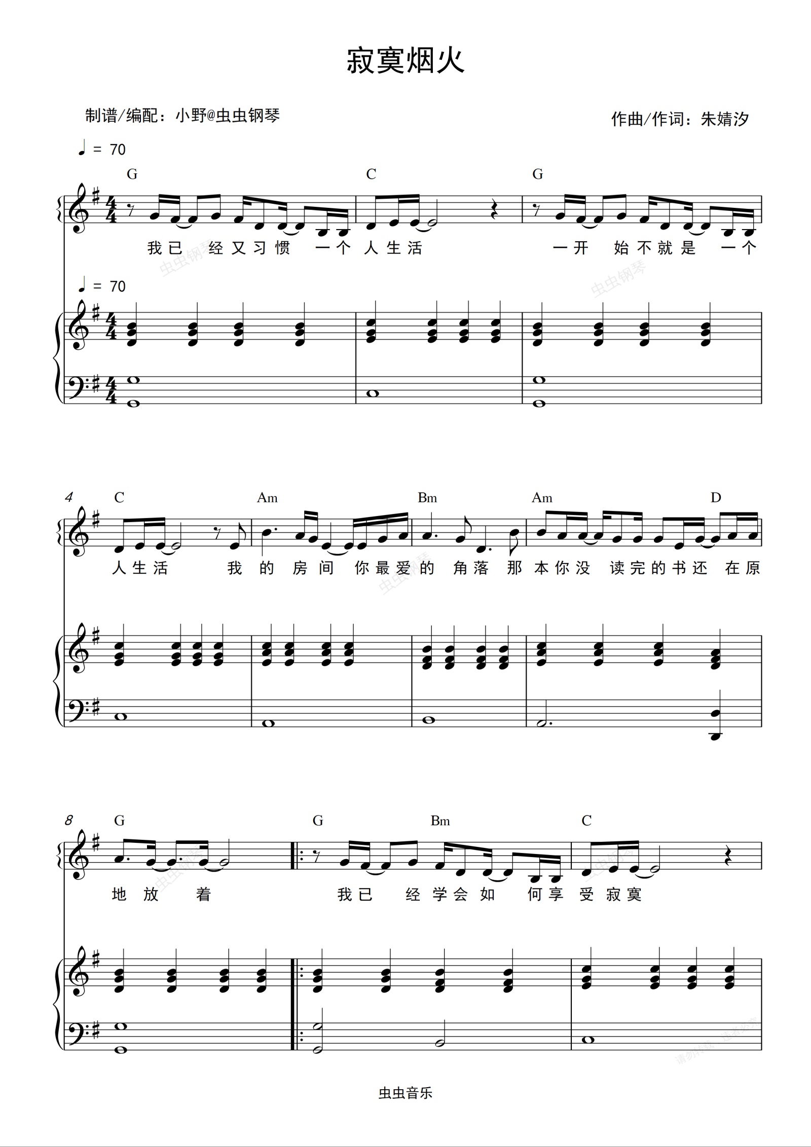 钢琴谱:寂寞烟火(G大调和弦弹唱版)