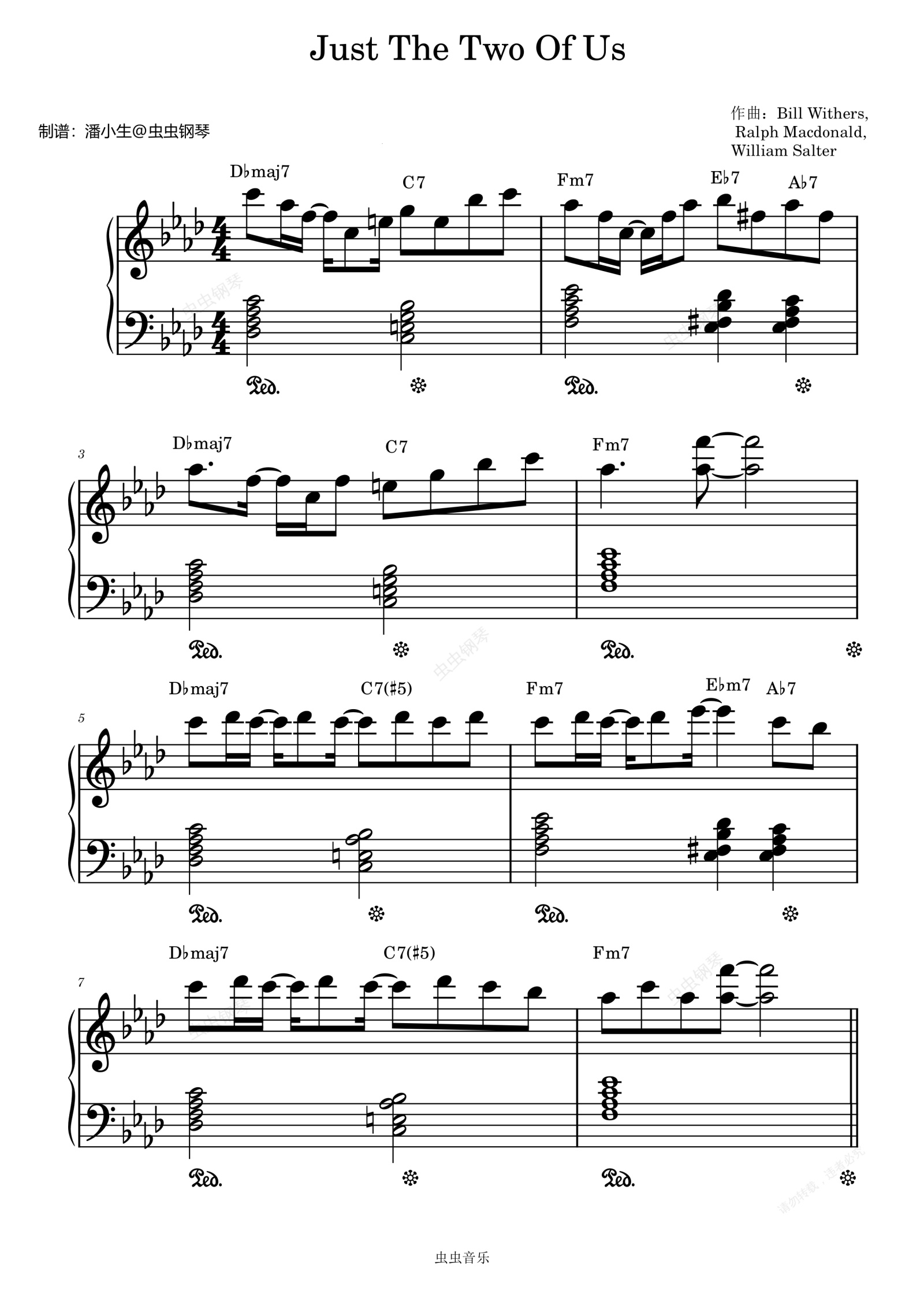 钢琴谱:Just The Two Of Us,原调简单完整独奏版。带和弦标记歌词,Bill Withers