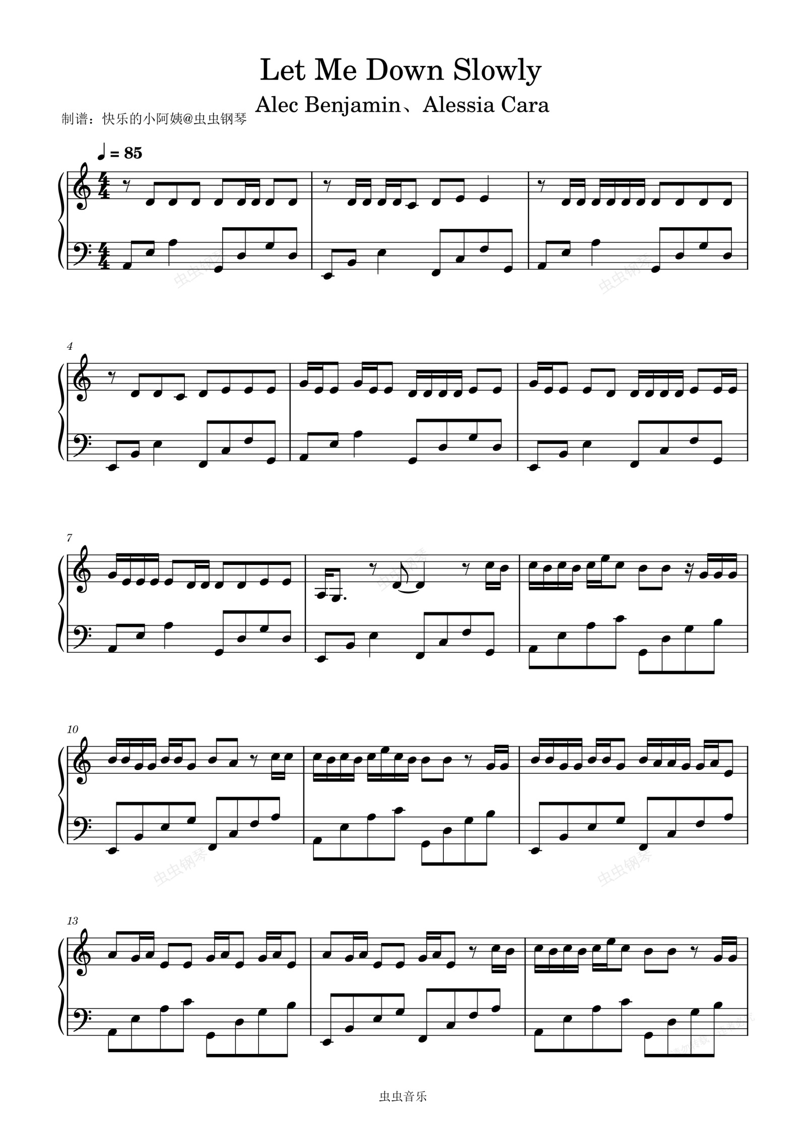 钢琴谱:Let Me Down Slowly-C调简易版