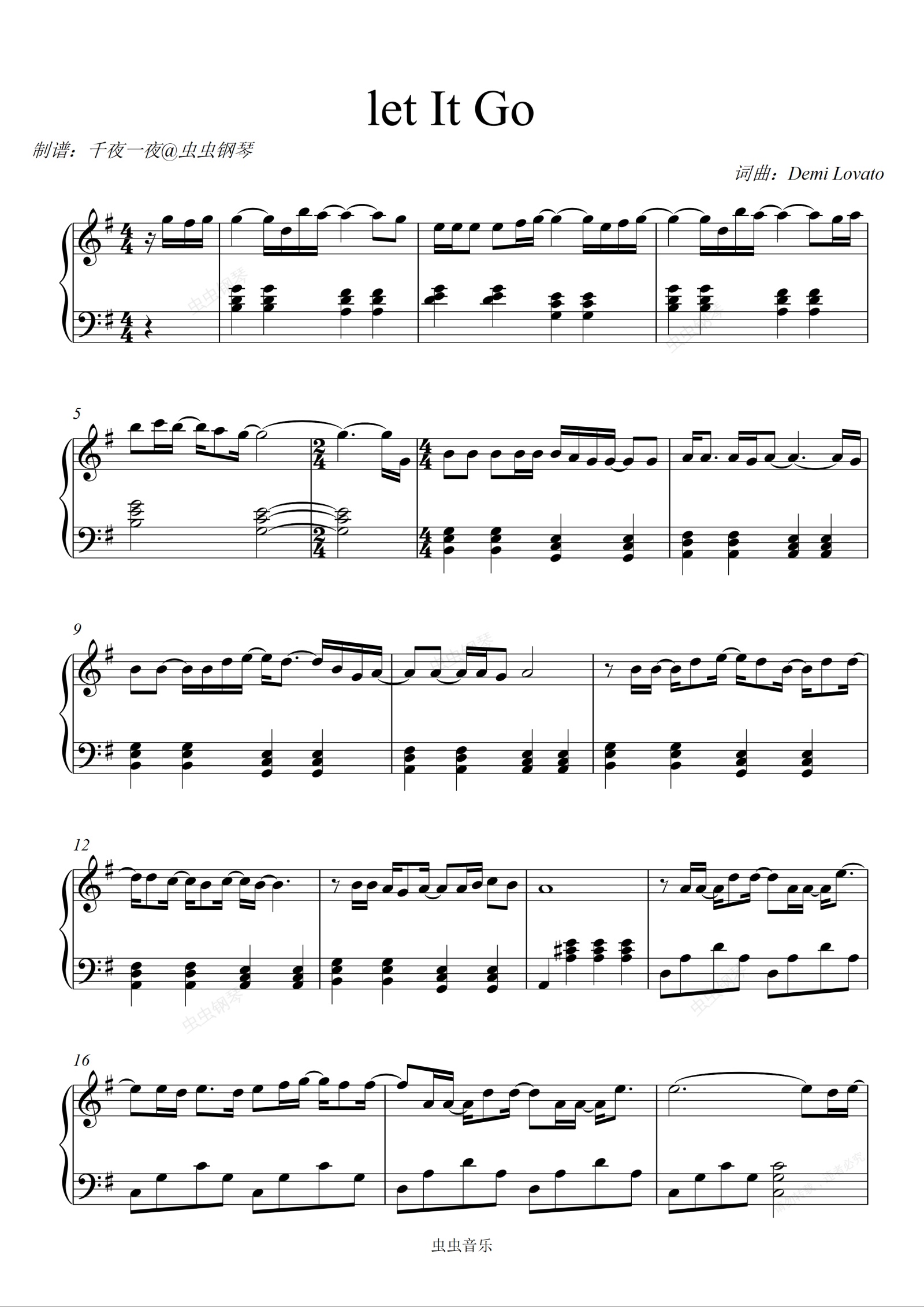 钢琴谱:【经典永恒】Demi Lovato -《冰雪奇缘》主题曲 - Let It Go 简单版