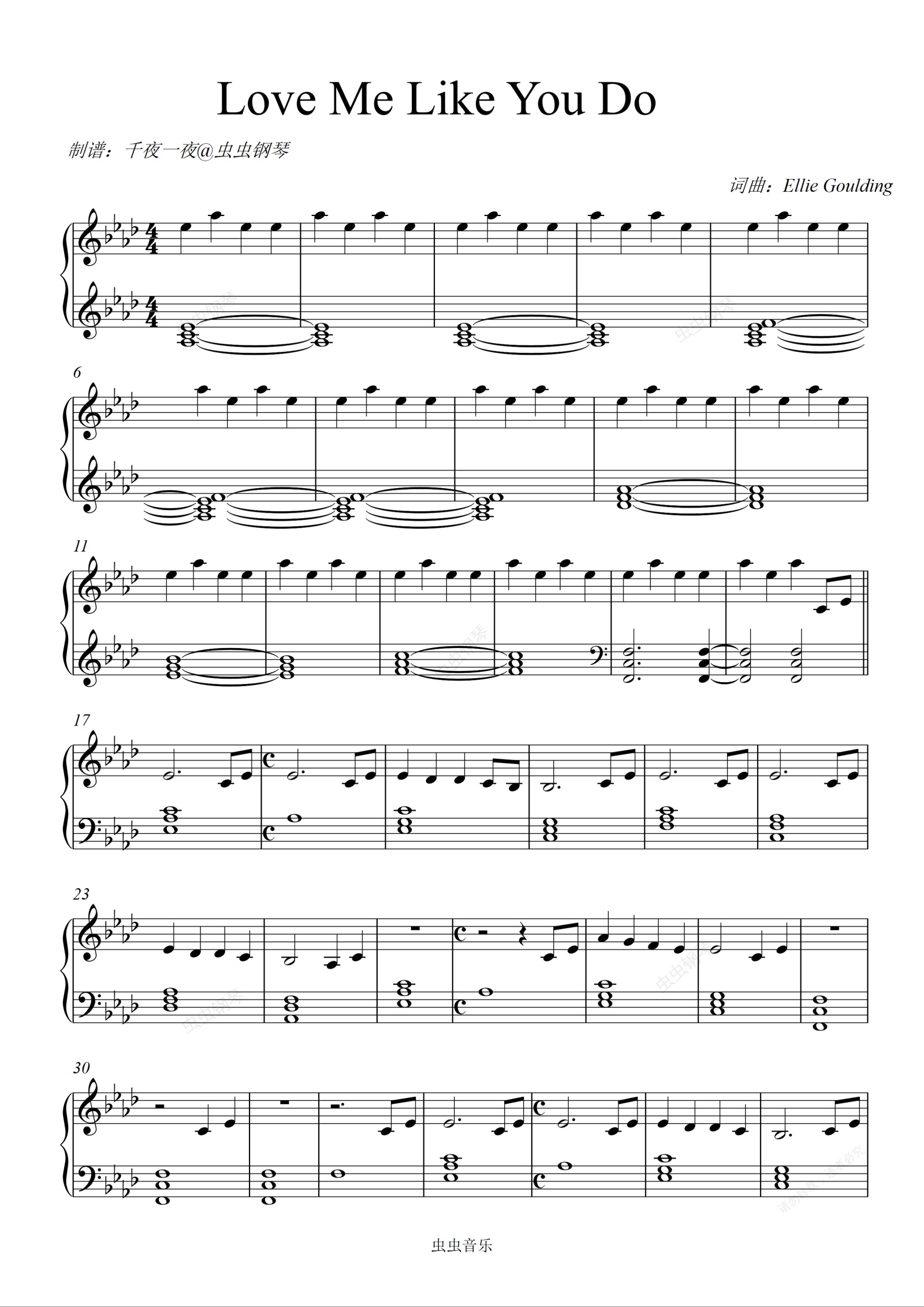 钢琴谱:五十度灰主题曲Love me like you do, 钢琴也能弹出绵羊音