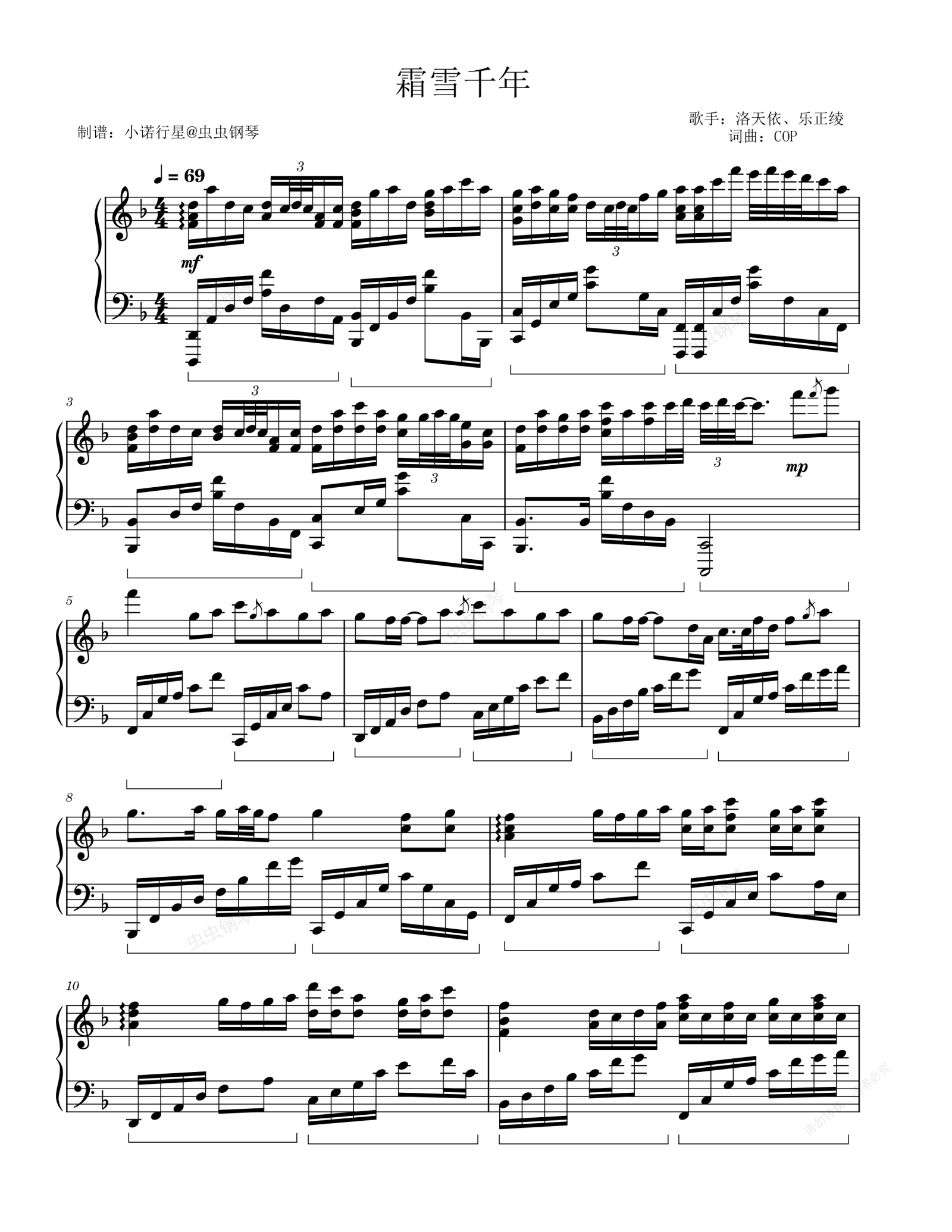钢琴谱:霜雪千年-高度还原 钢琴独奏