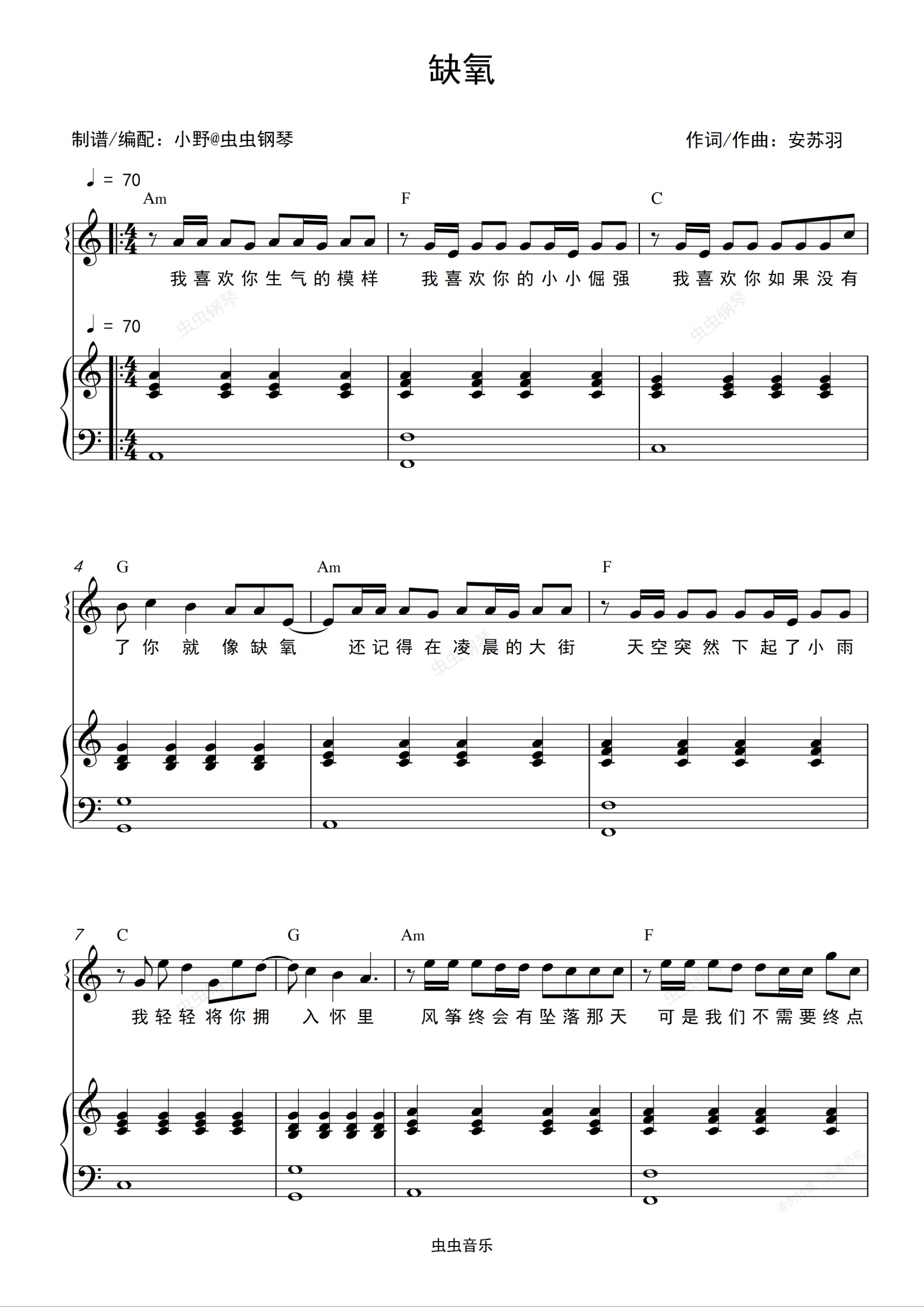 钢琴谱:缺氧(a小调和弦弹唱版)